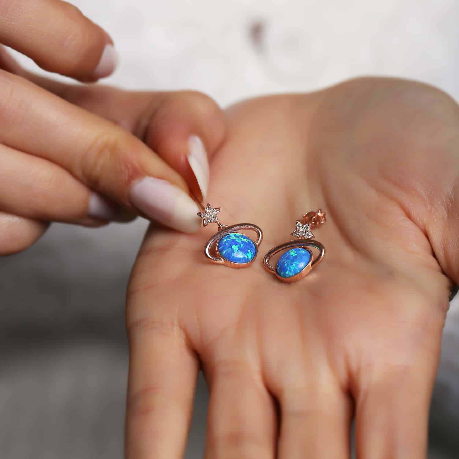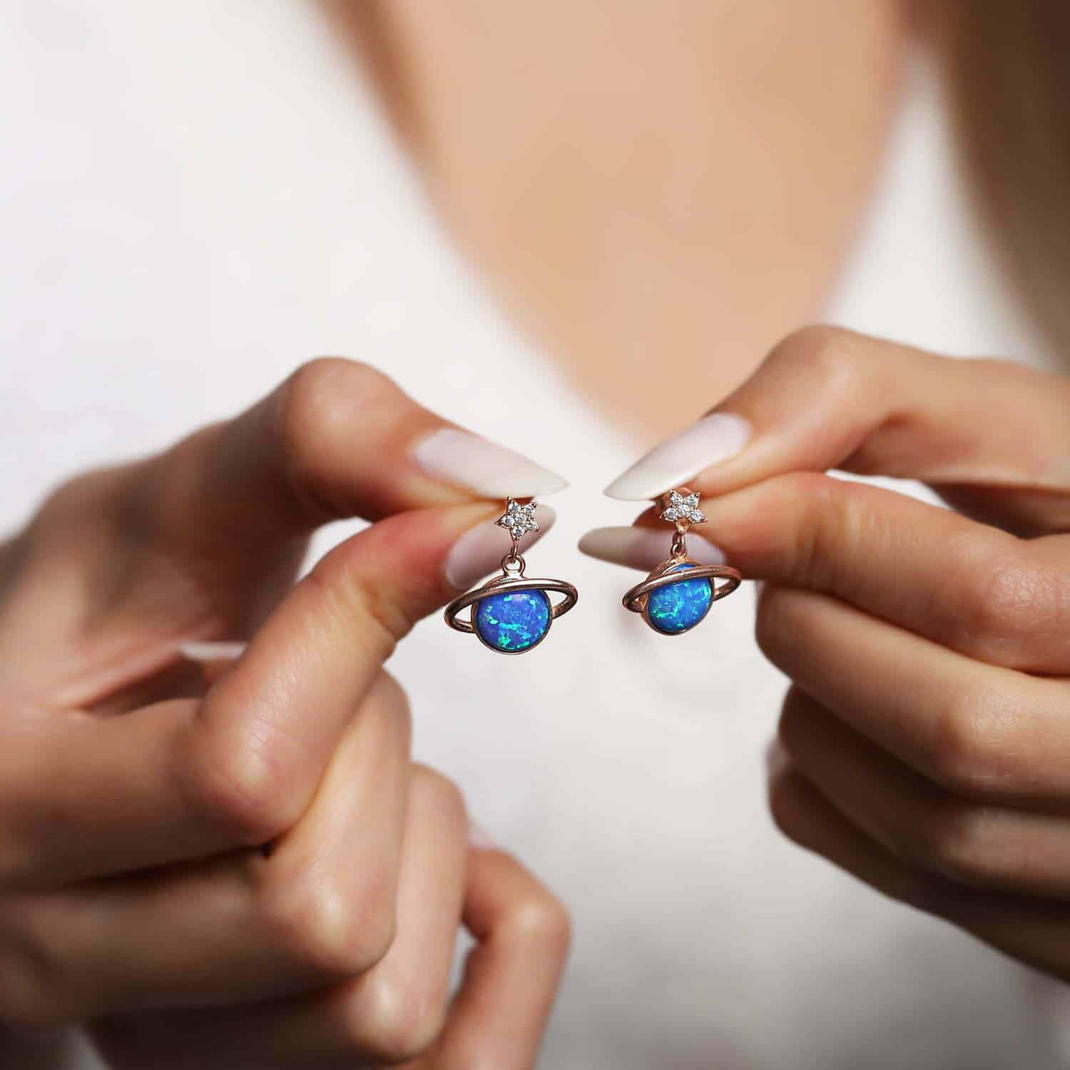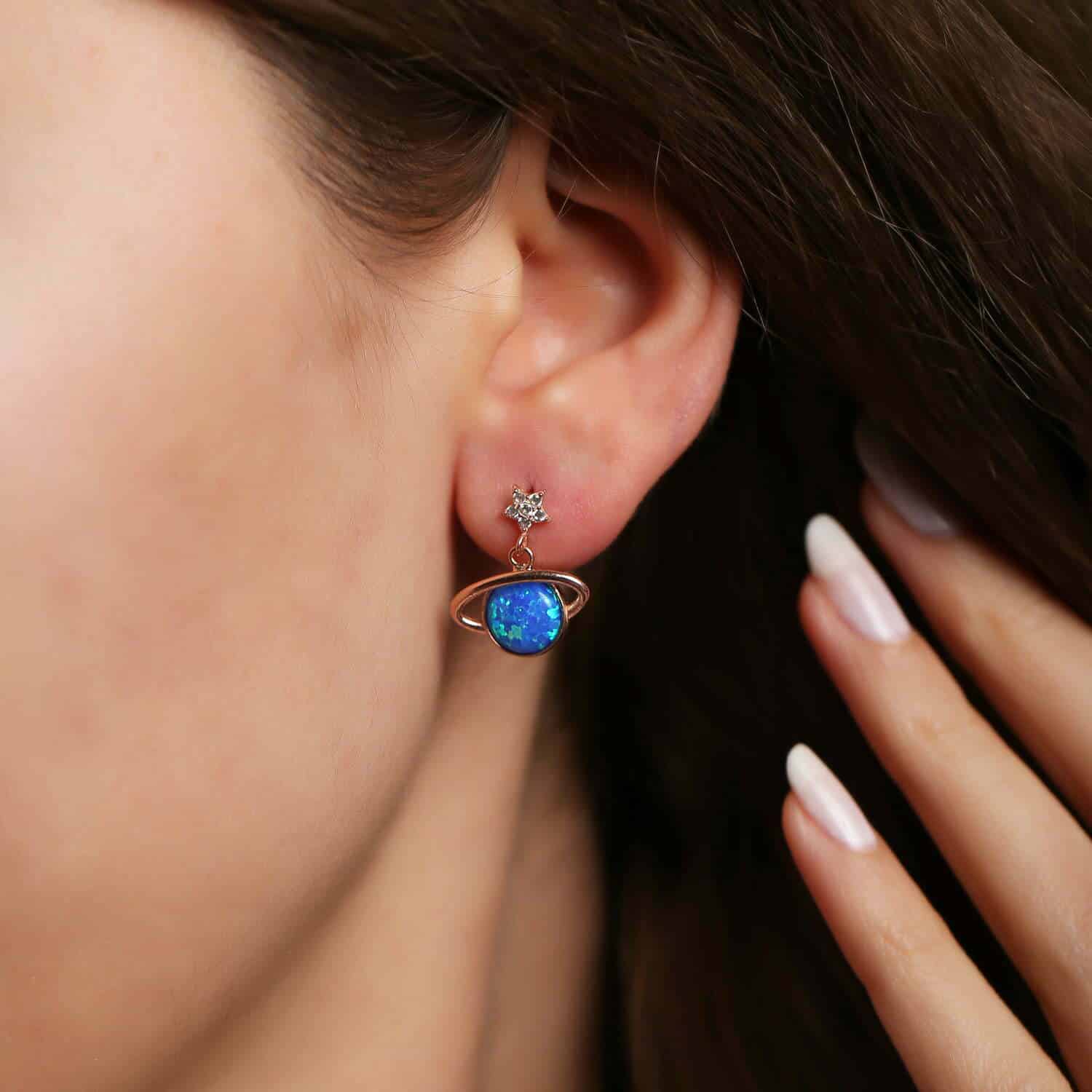 Boucles d'oreilles Saturne en pierre Opal