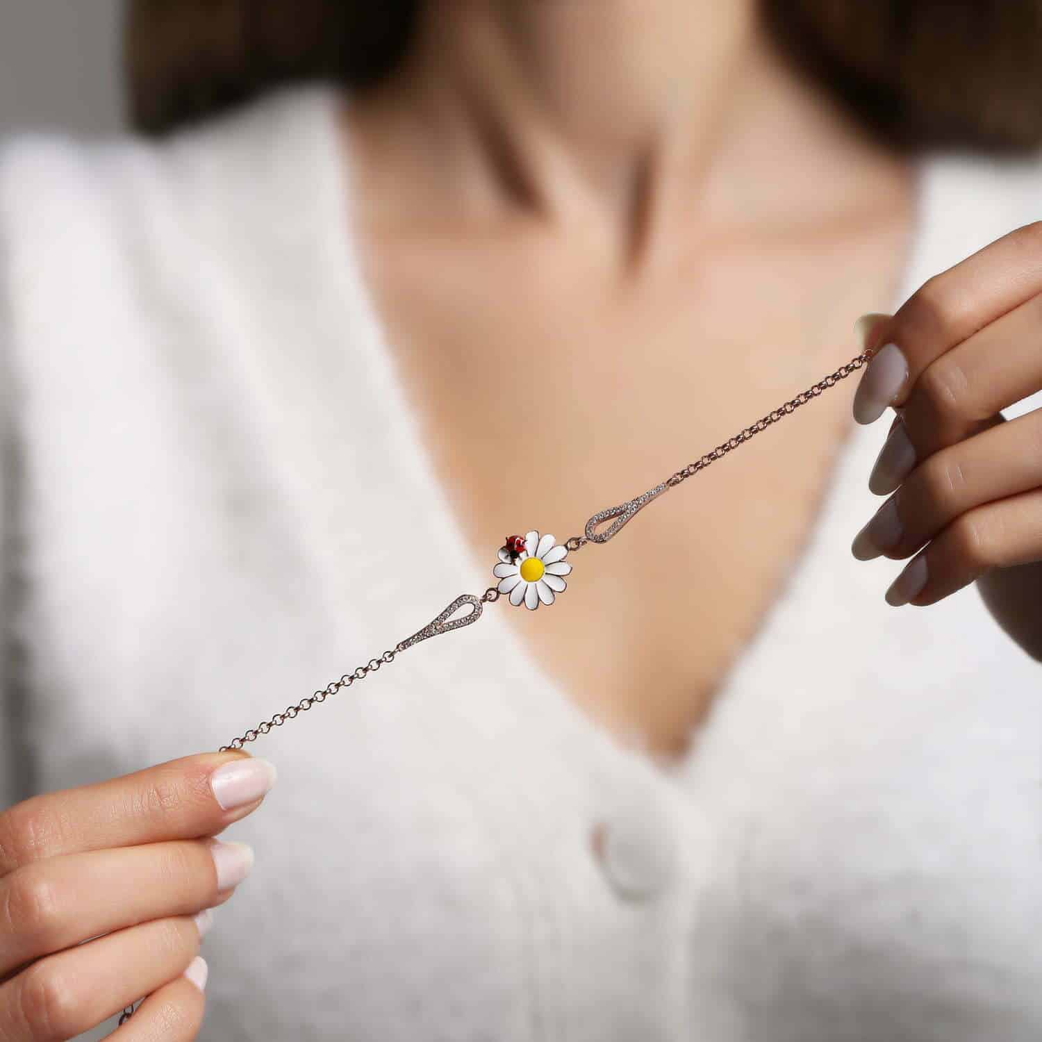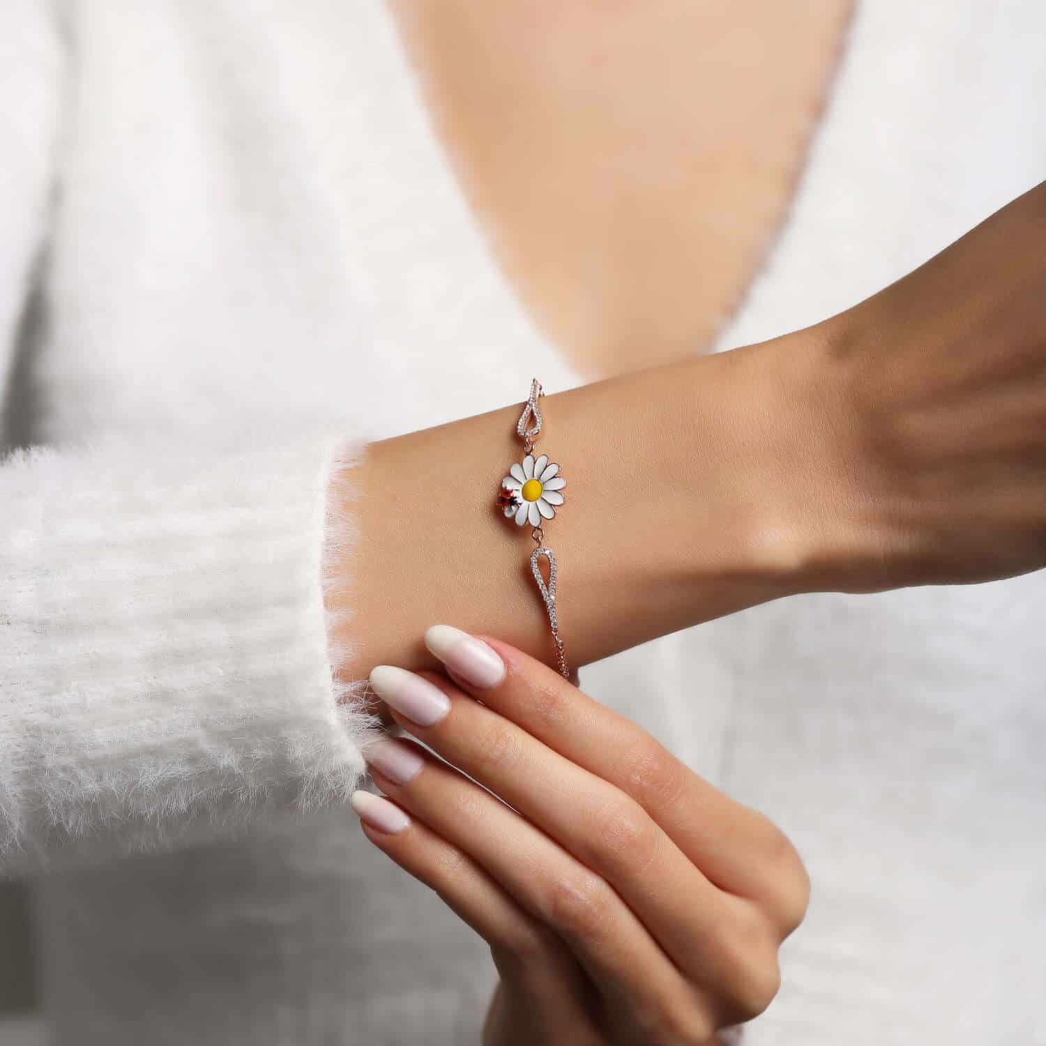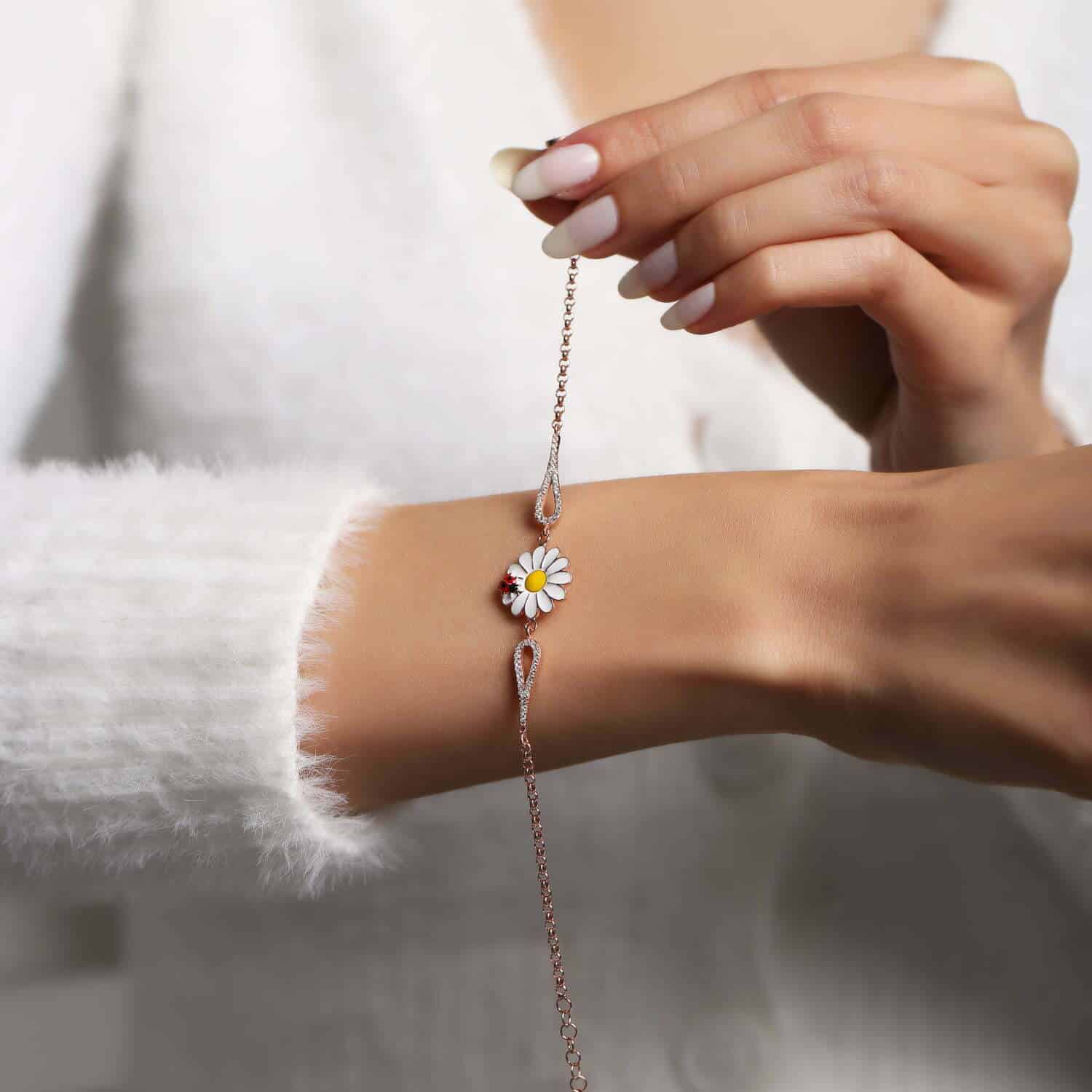 Braceket Marguerite avec Coccinelle plaquƩ Or Rose