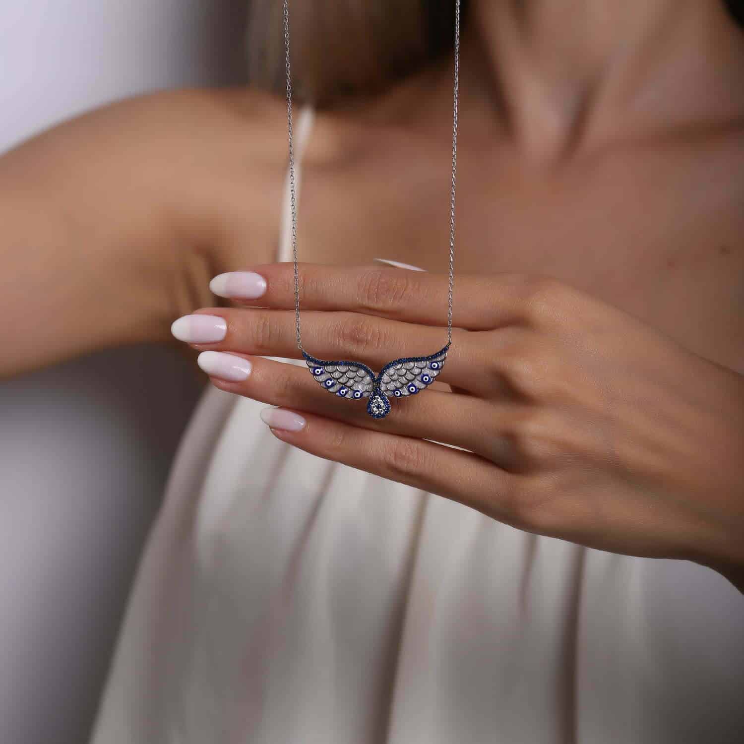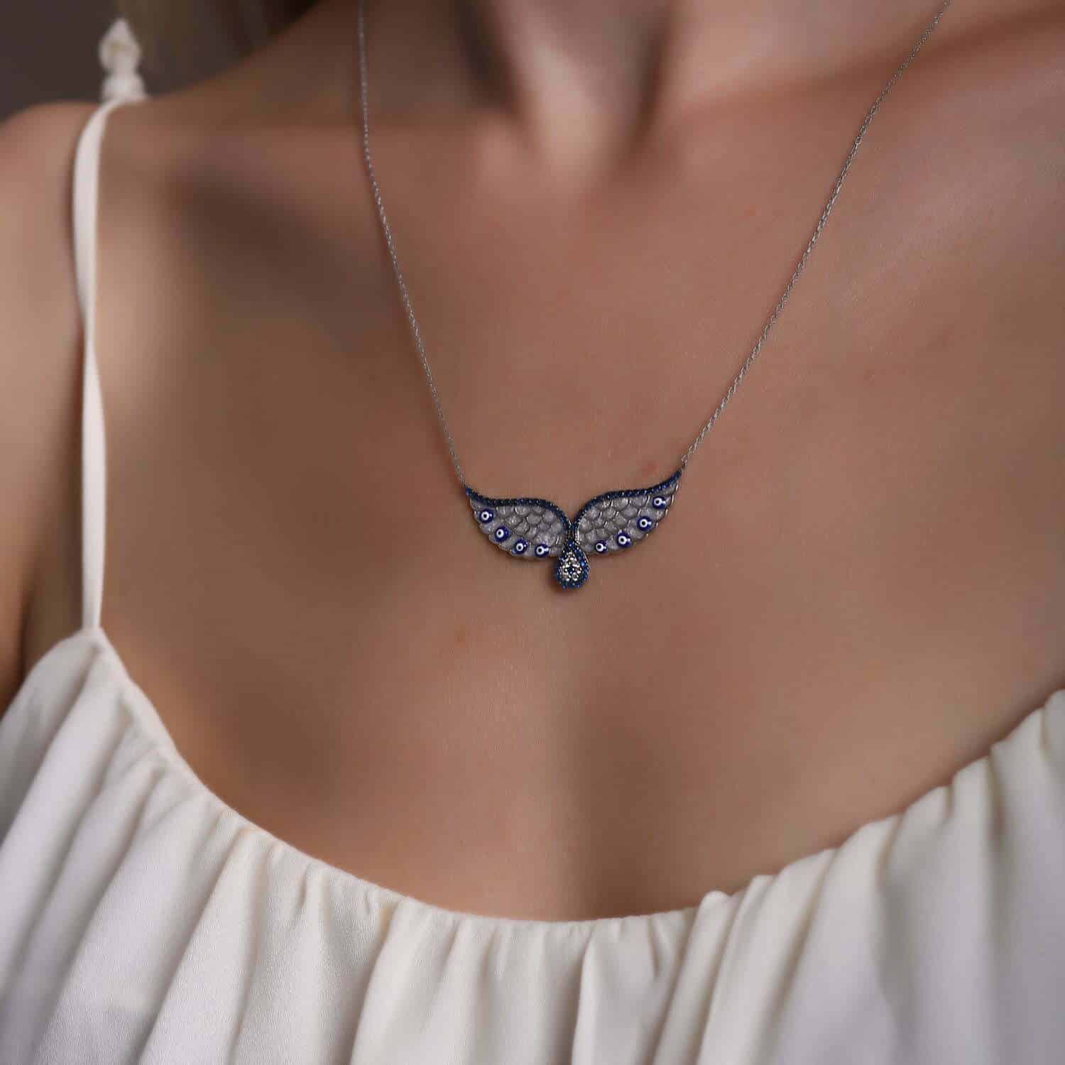 Collier Ailes d'Ange avec Œil de Fatma en pierre Email