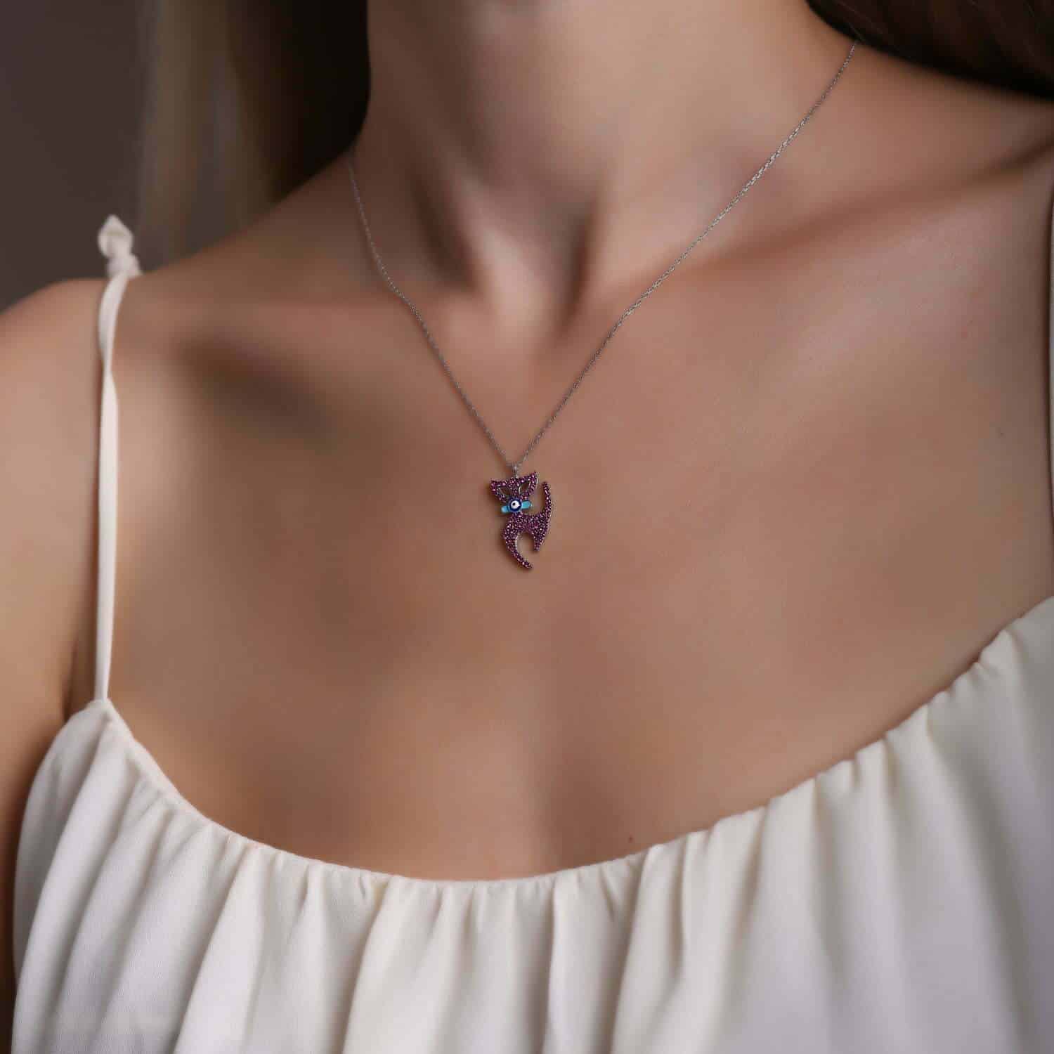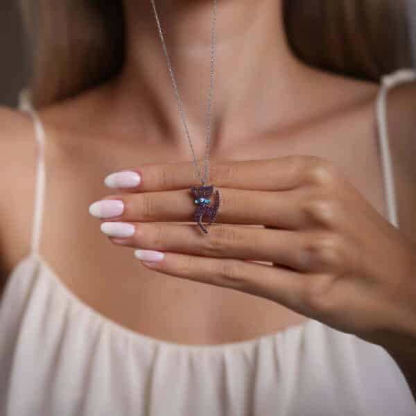 Collier Chat en pierre Zircon