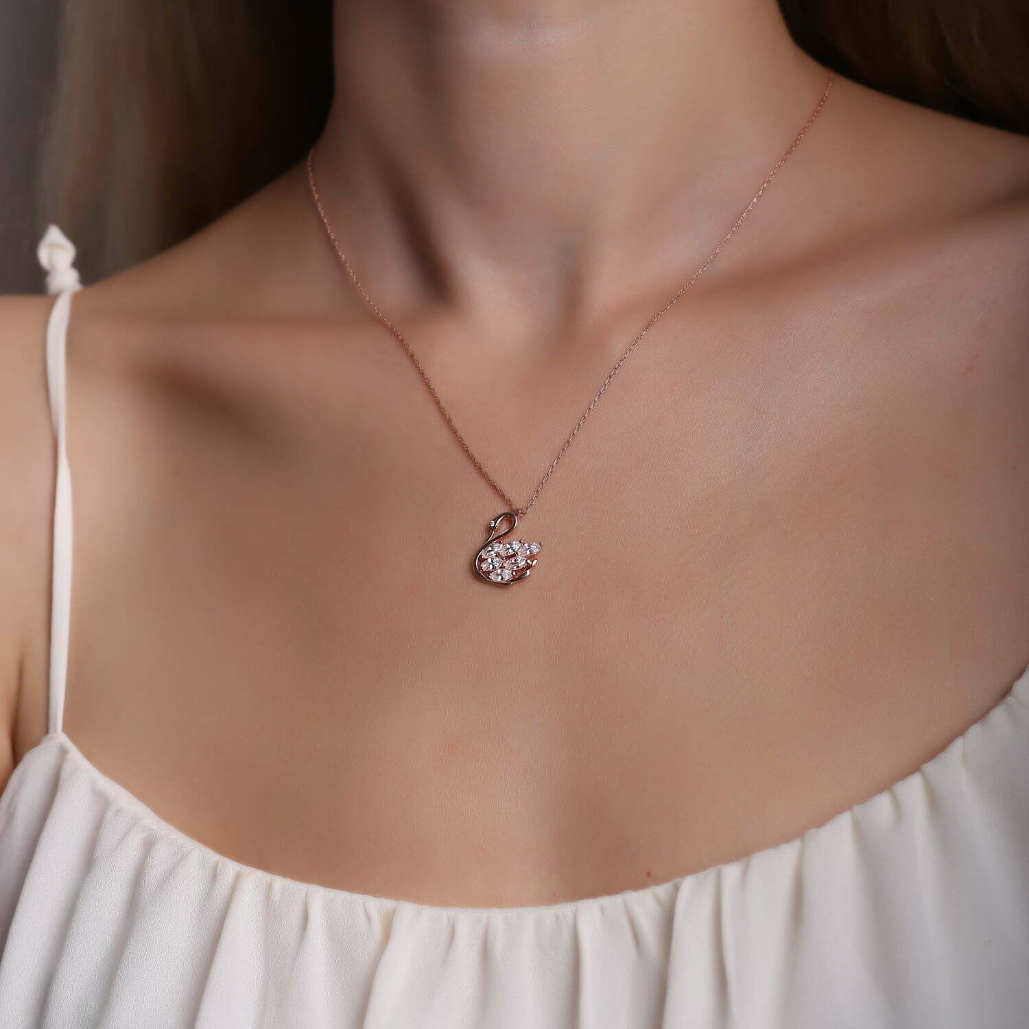 Collier Cygne en pierre Zircon