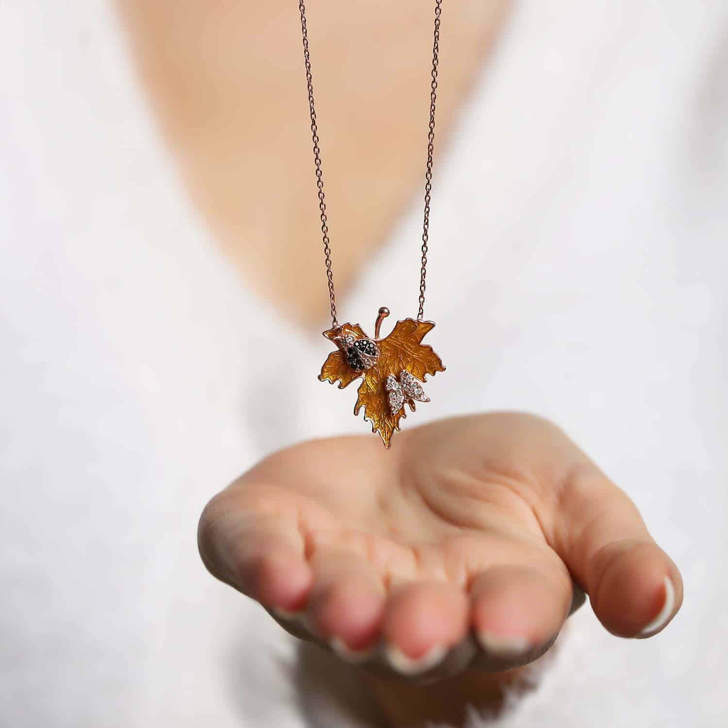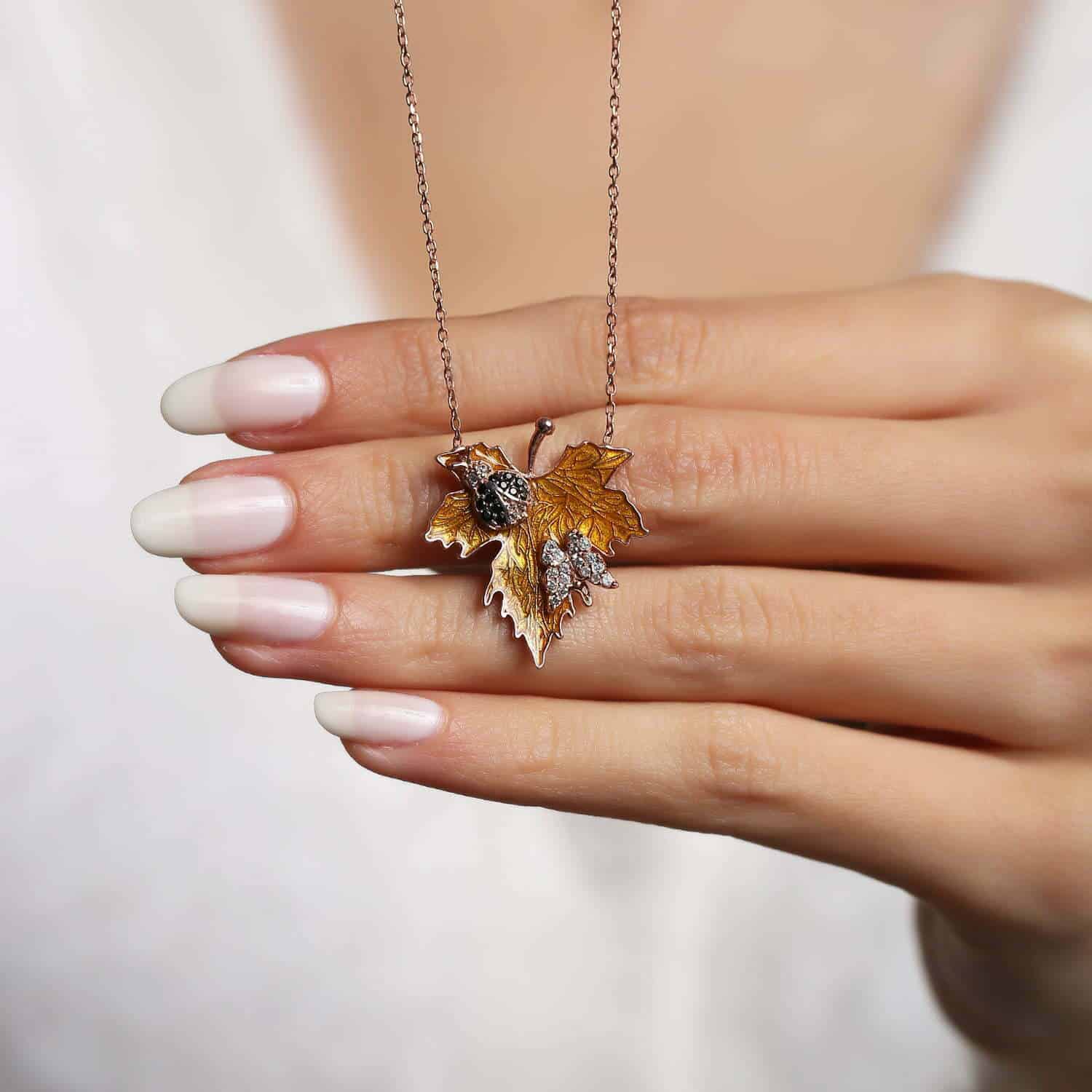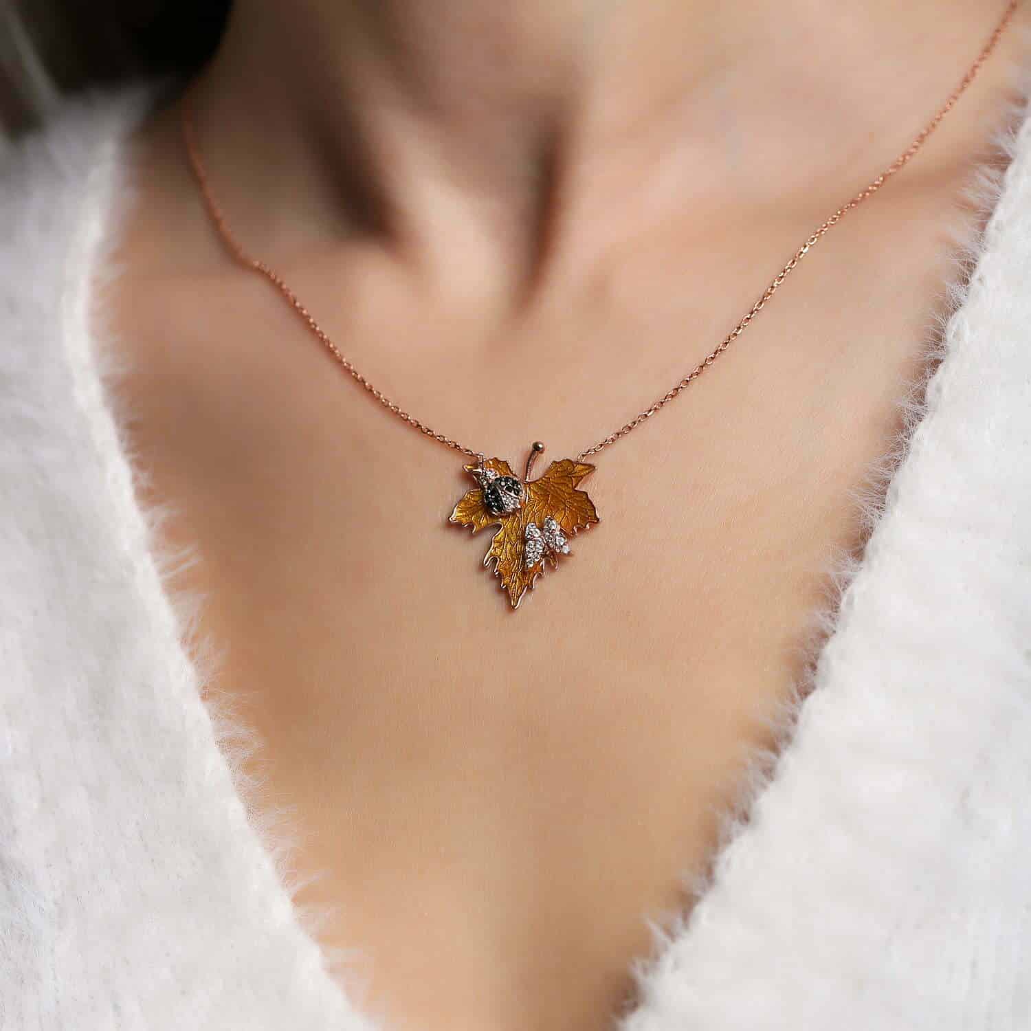 Collier Feuille d'Erable avec Papillon et Coccinelle