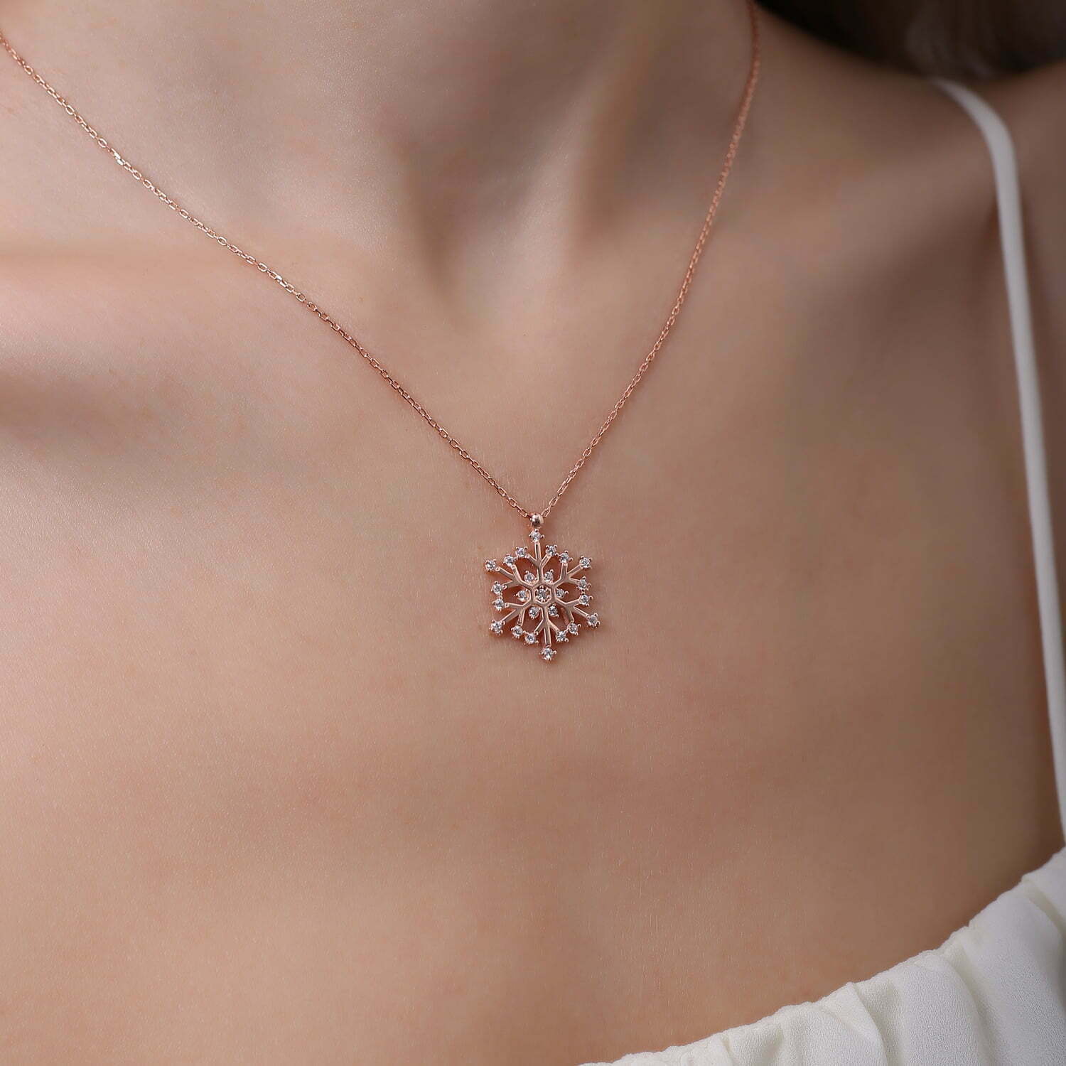 Collier Flocon de neige plaquƩ Or Rose