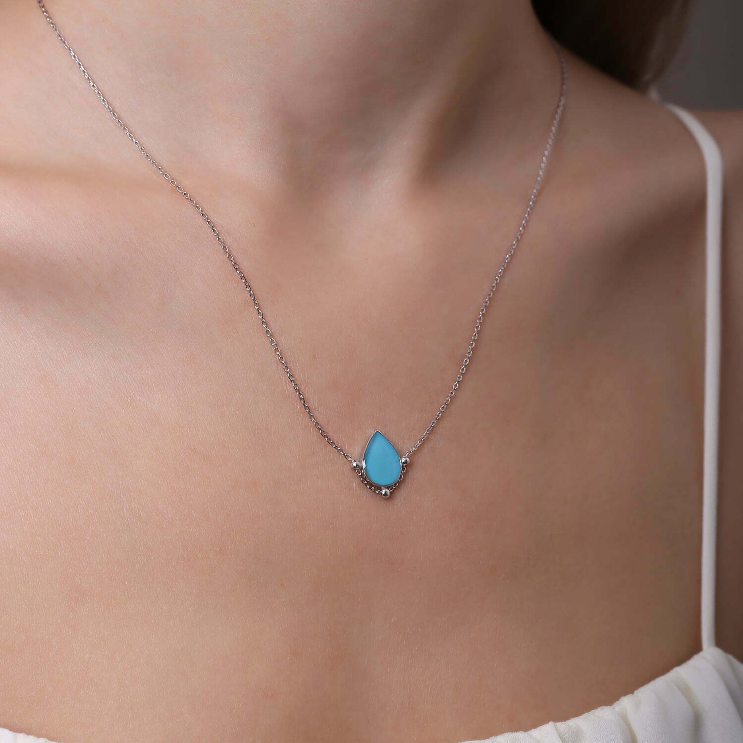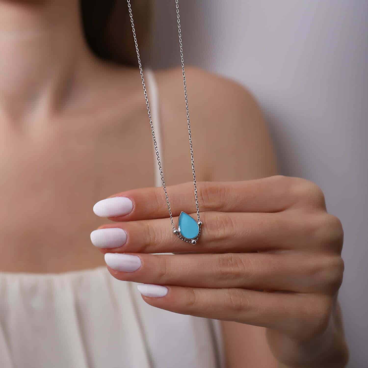 Collier Goutte turquoise en Email