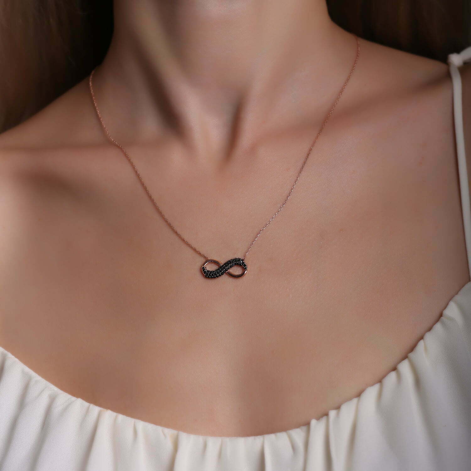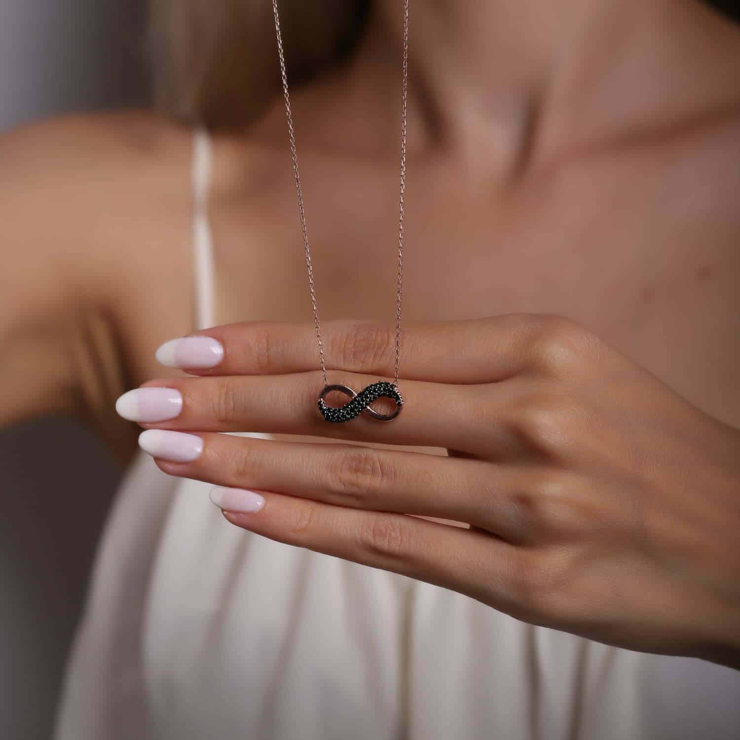 Collier Infini noir en pierre Zircon