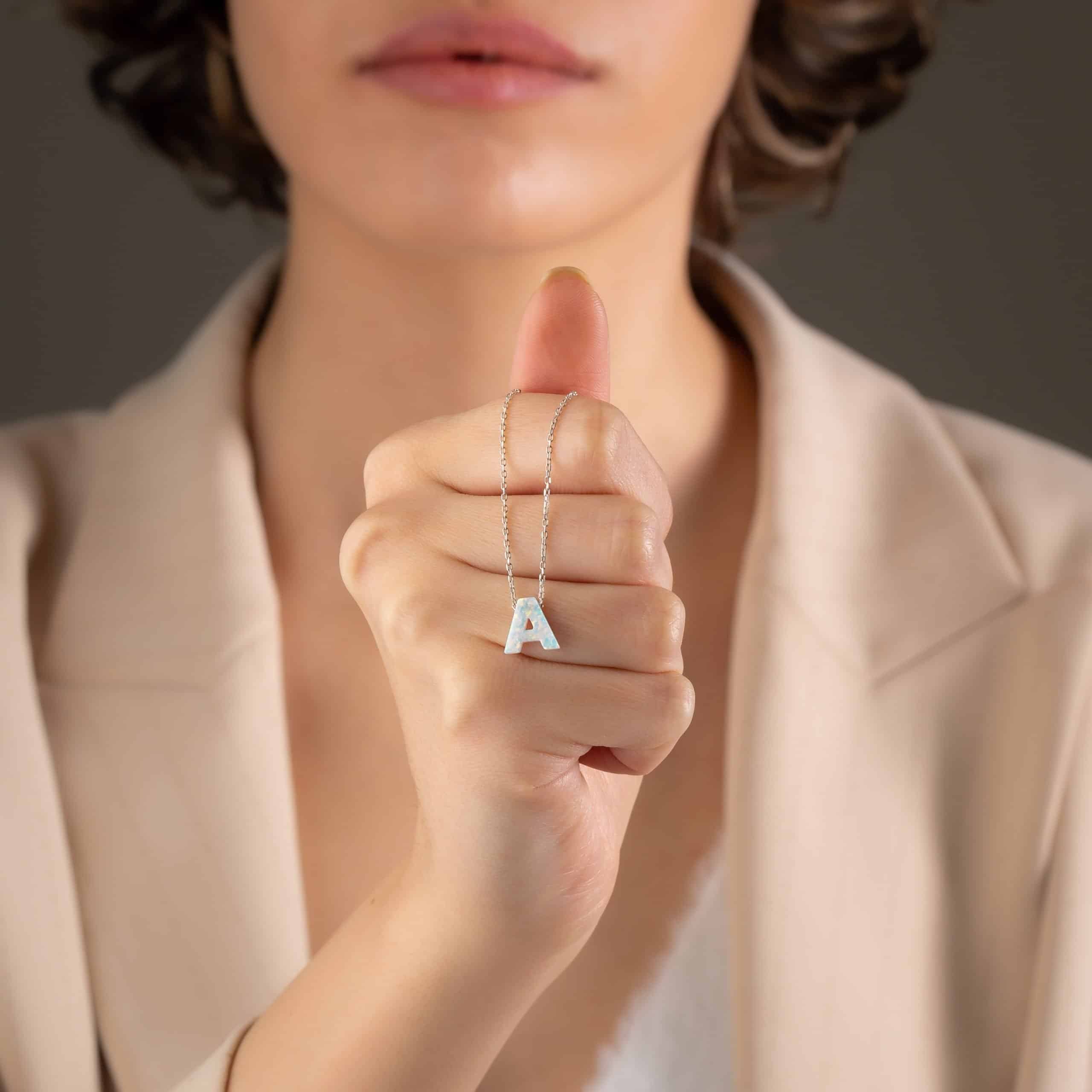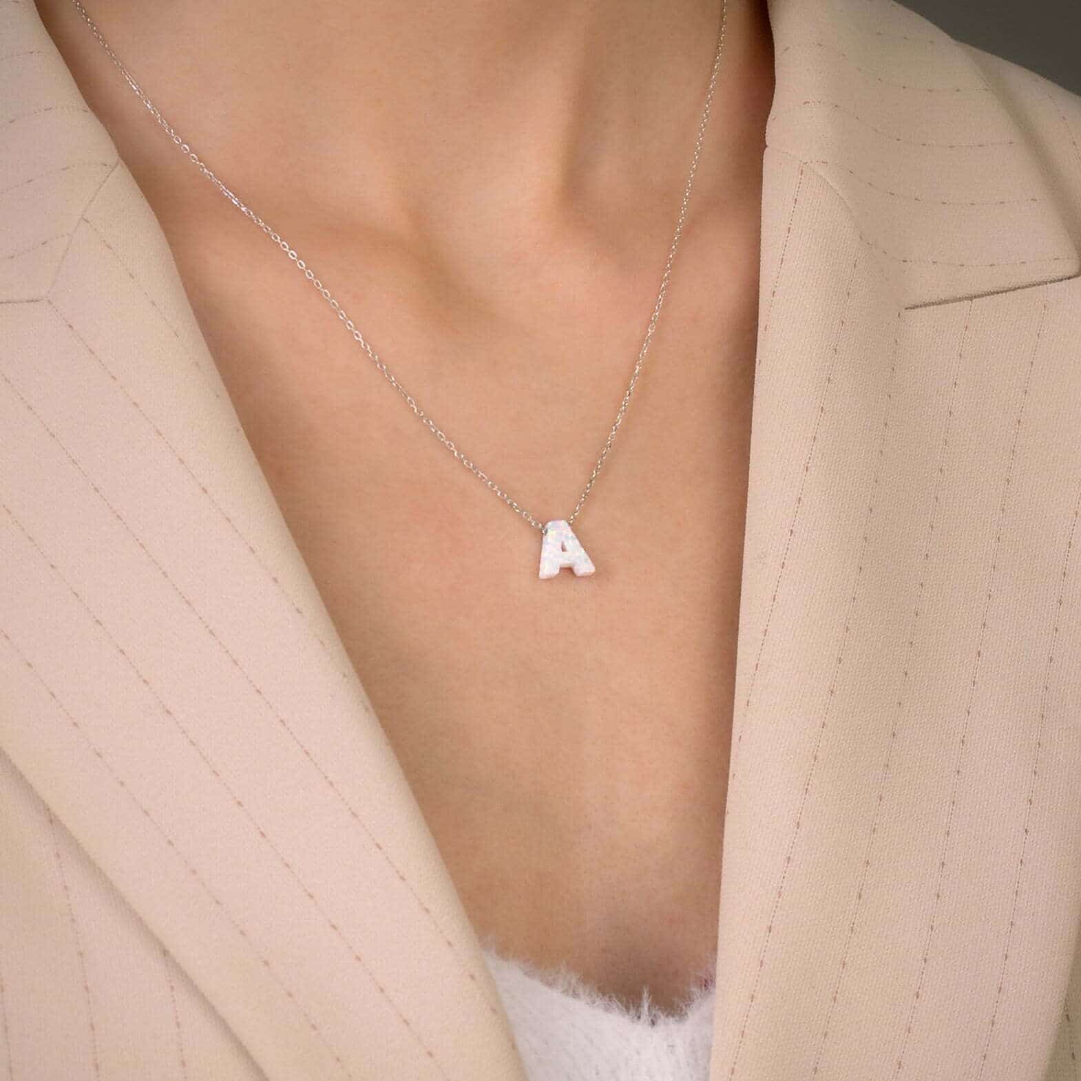 Collier Lettre A en pierre Opal