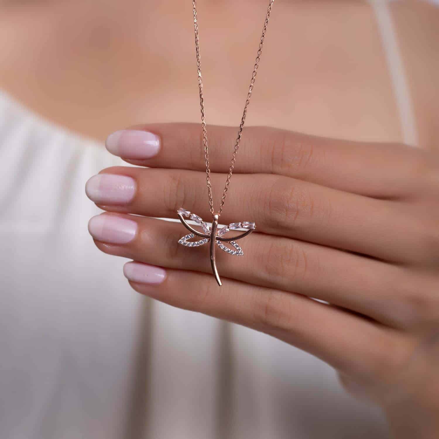 Collier Libellule finition pierre Baguette