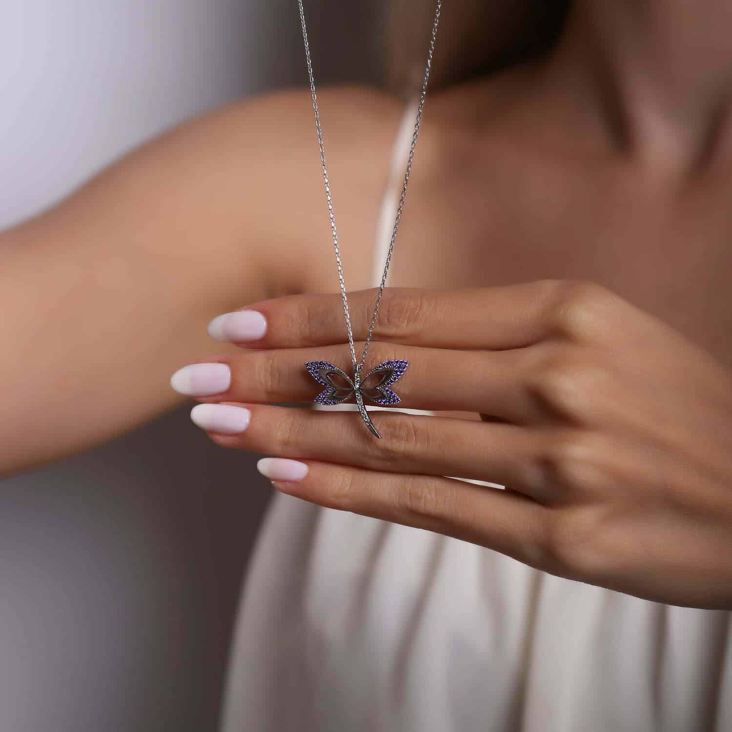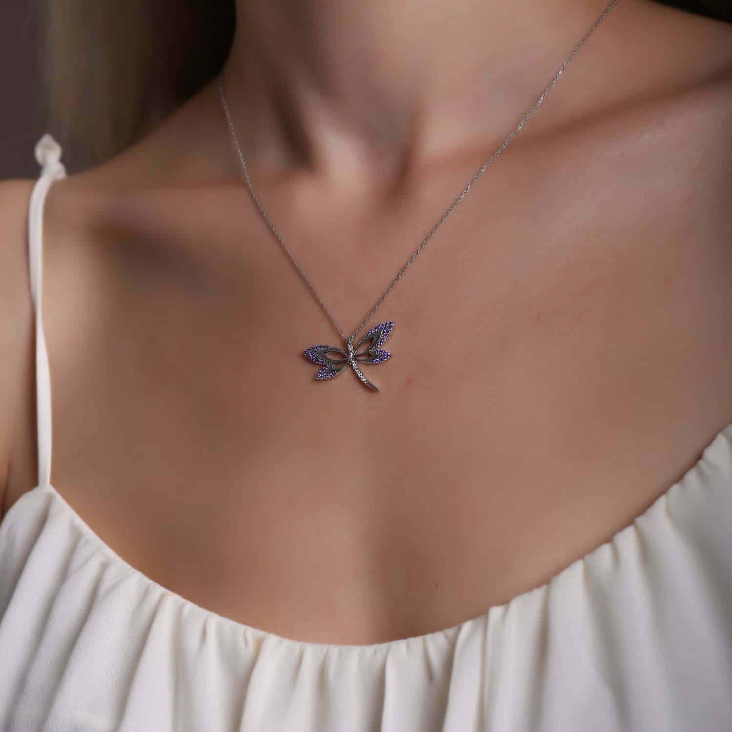 Collier Libellule violette en pierre Zircon