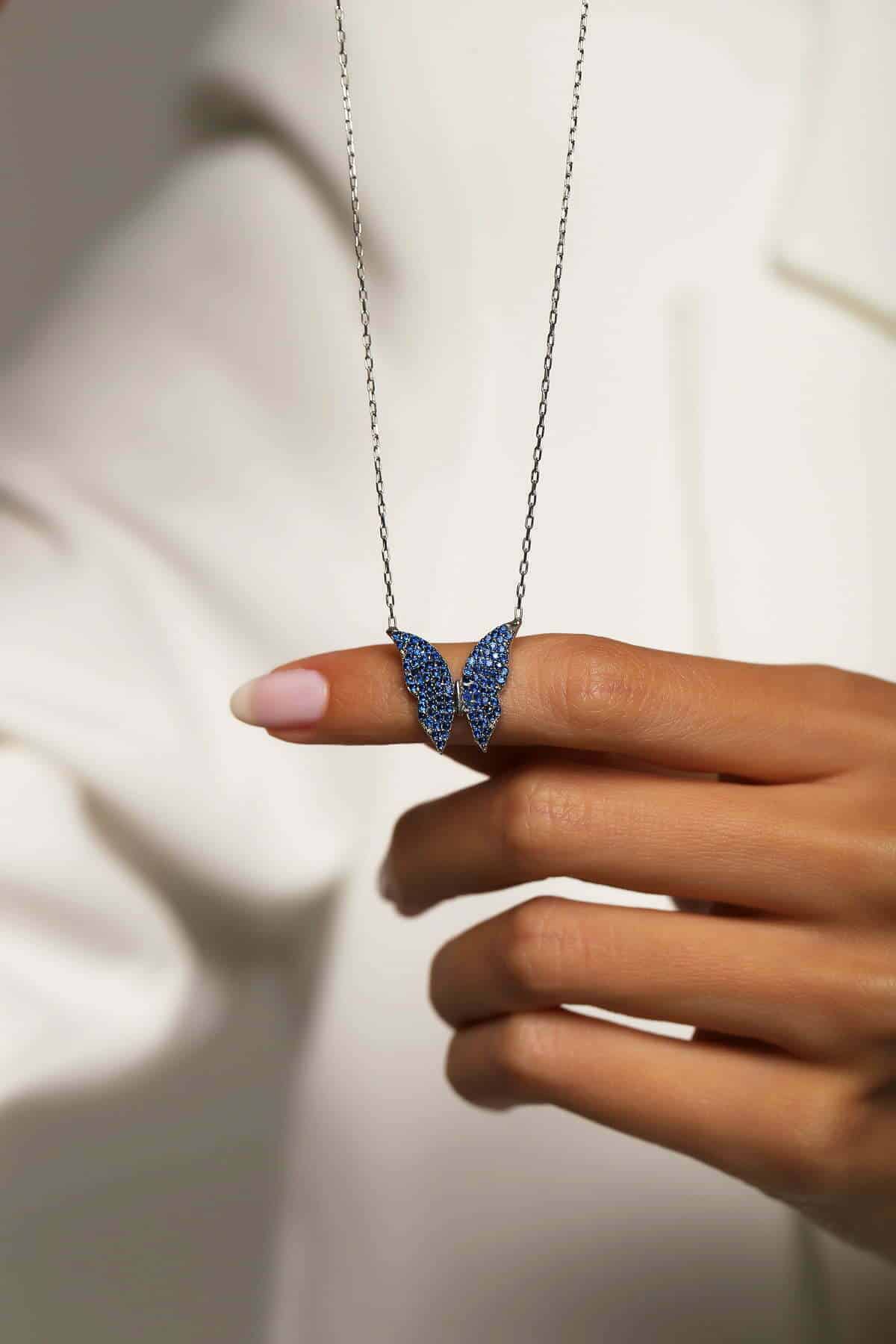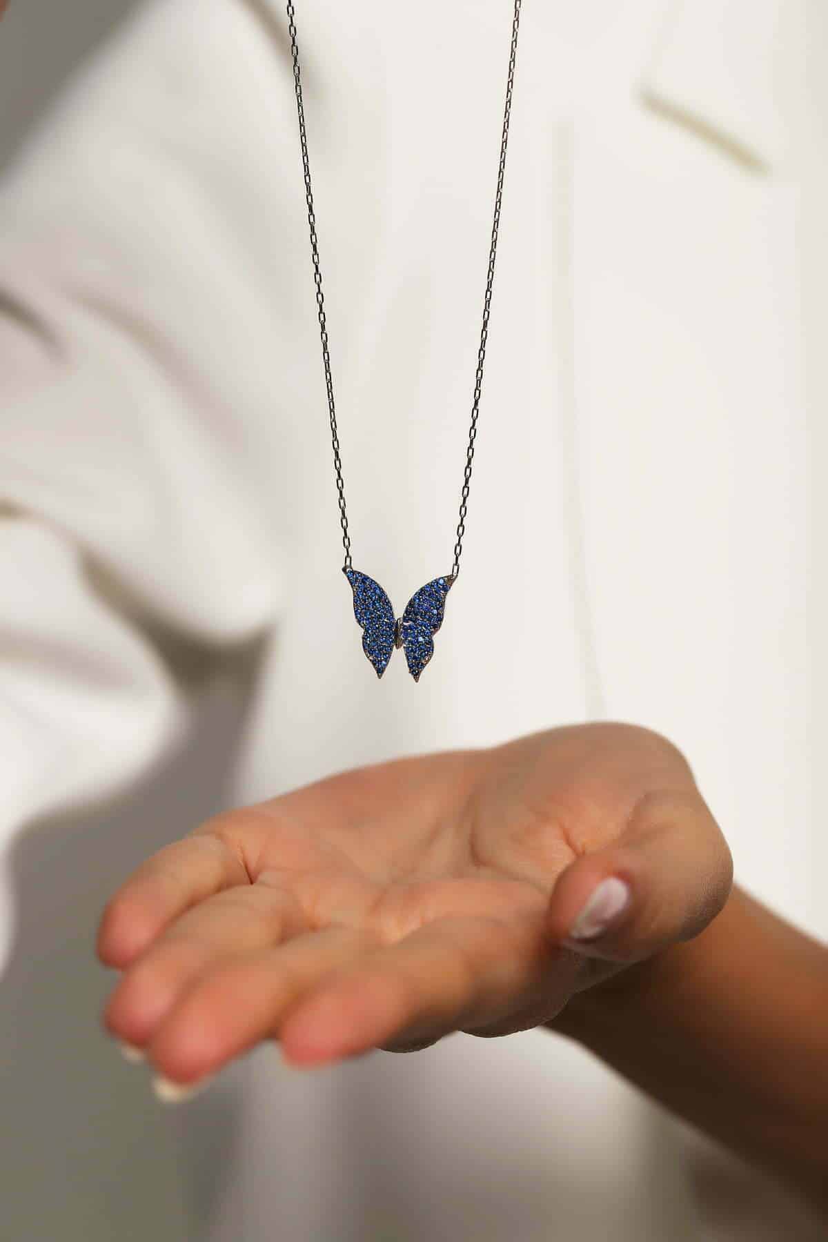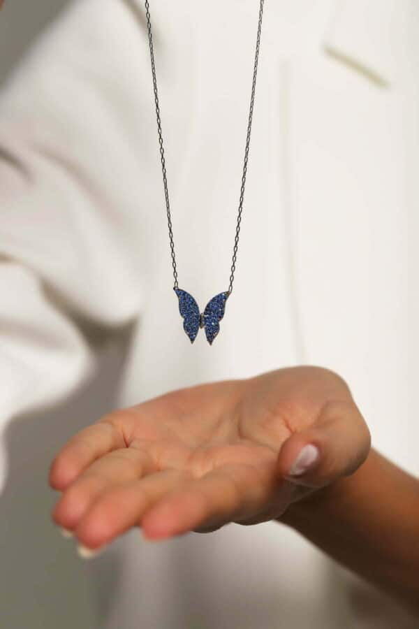 Collier Papillon bleu en pierre Zirkon
