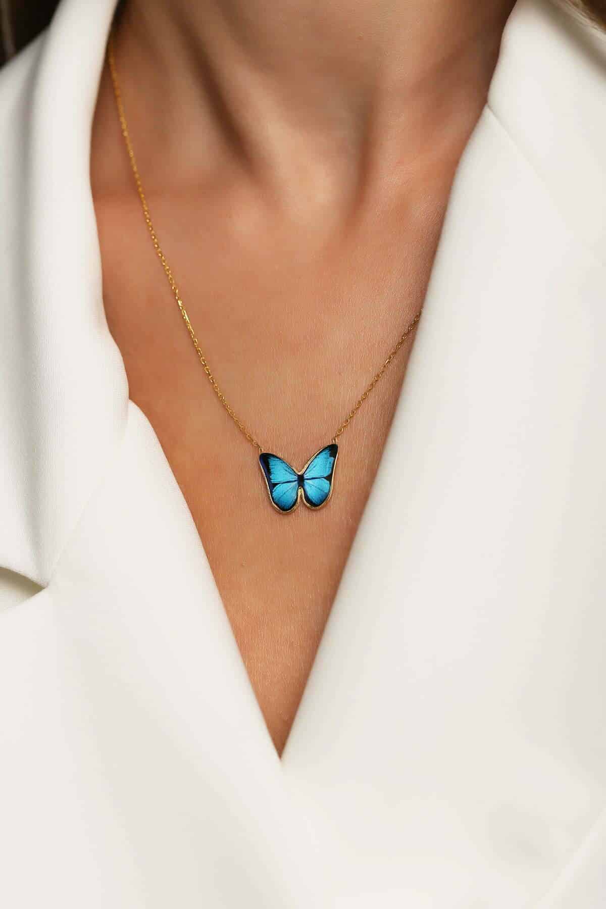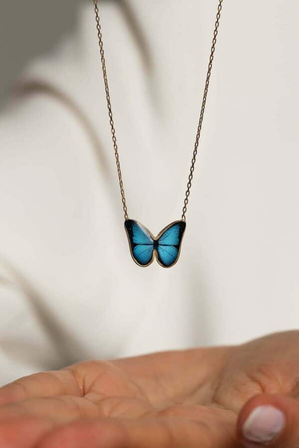 Collier Papillon bleu plaquƩ Or