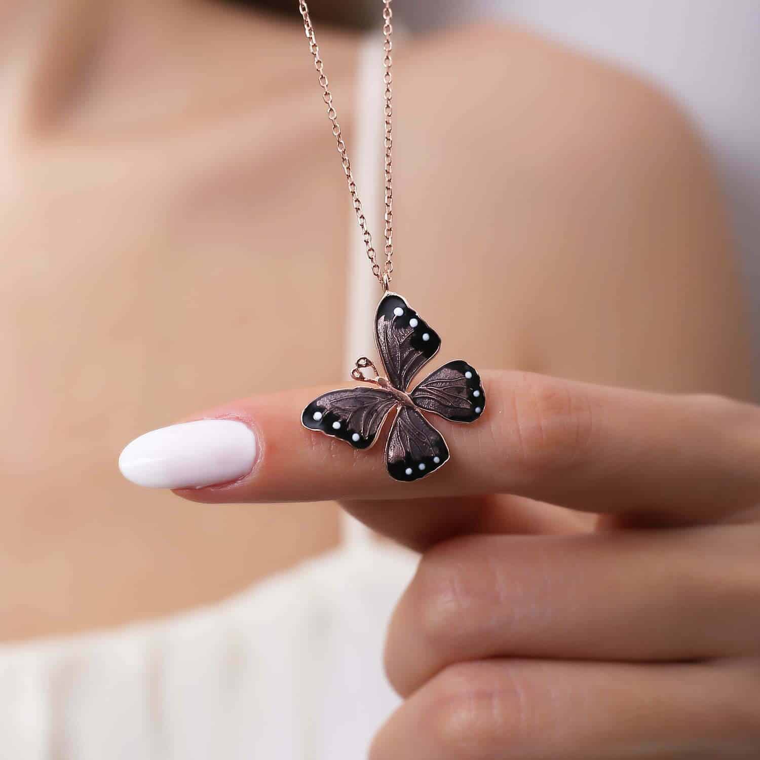 Collier Papillon marron en pierre Email