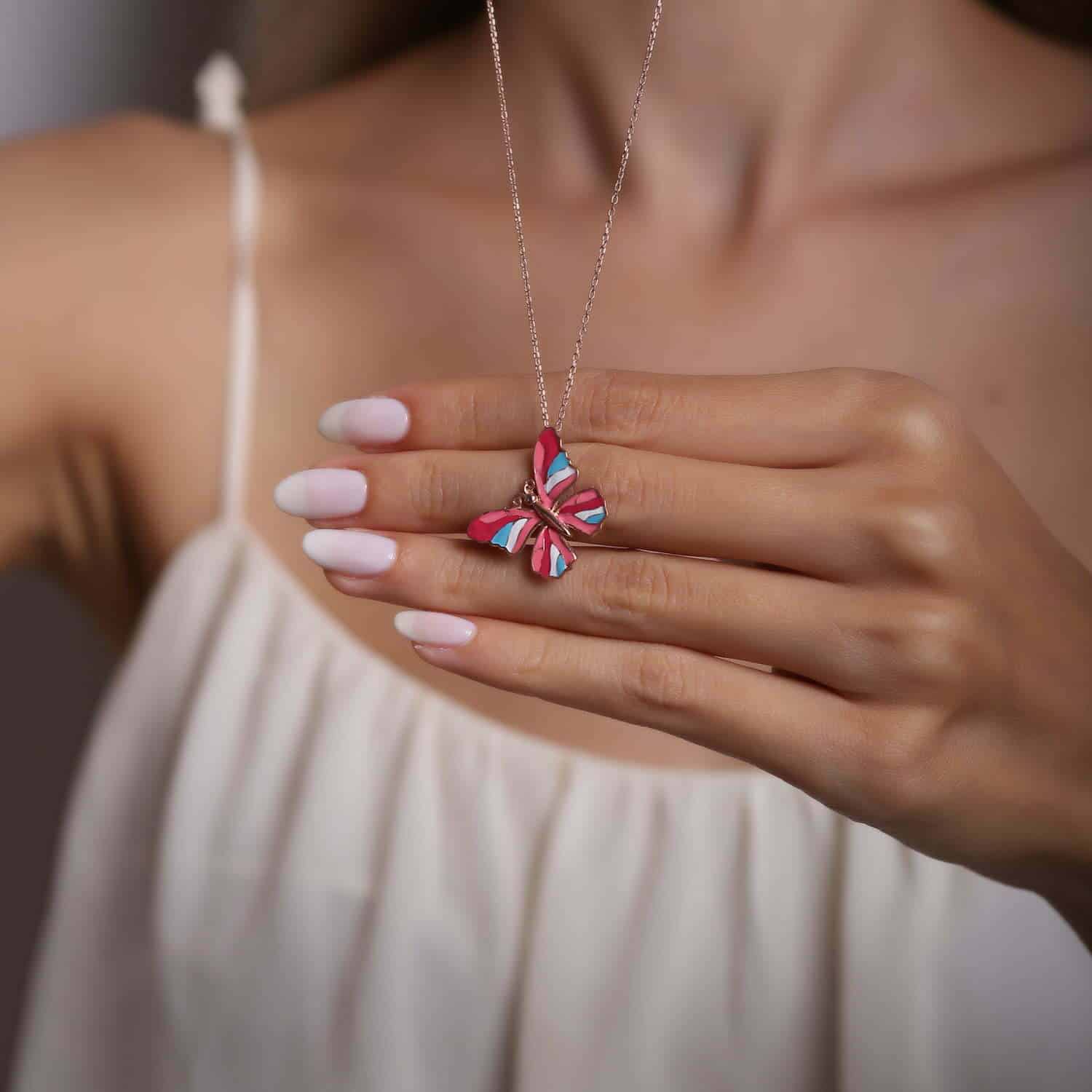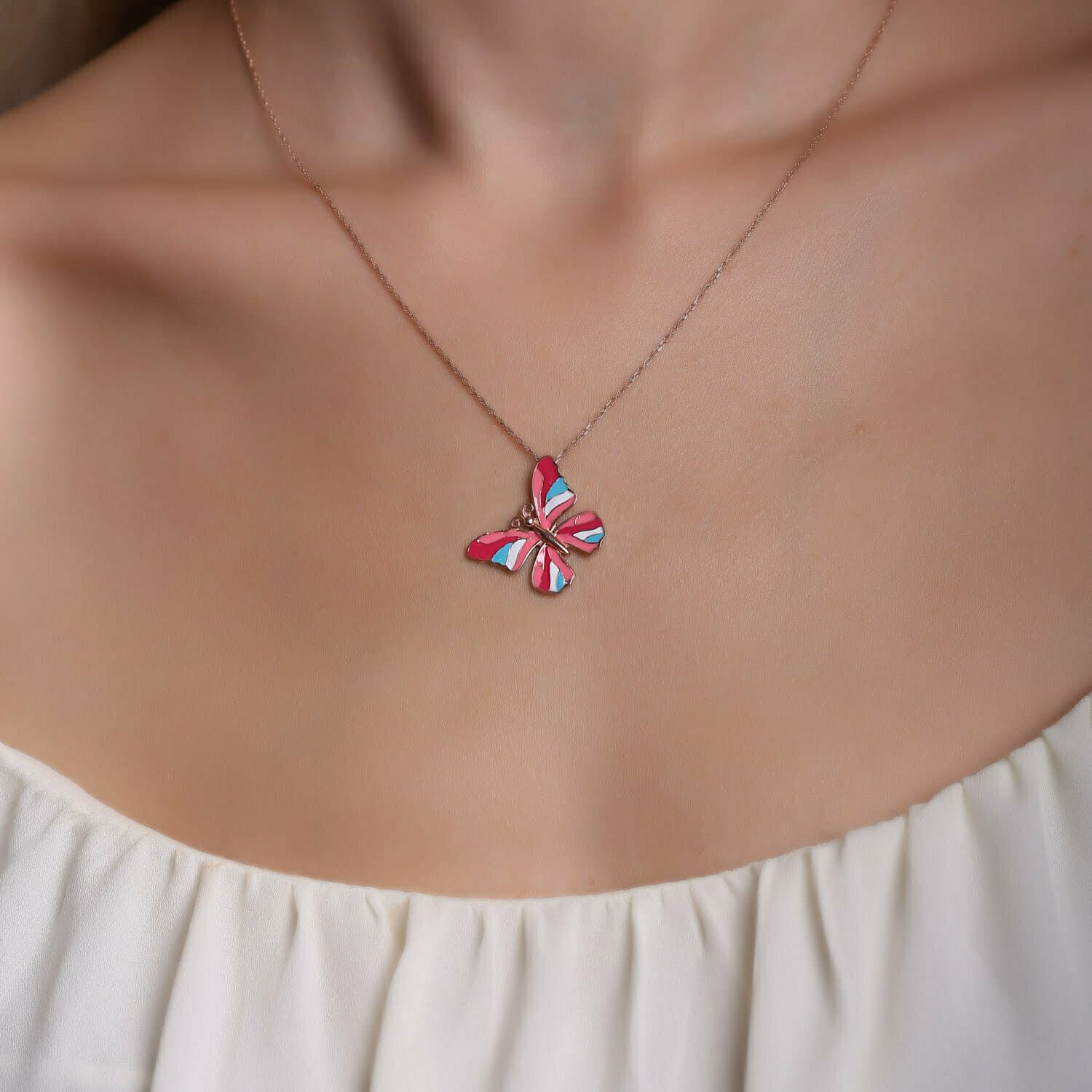 Collier Papillon Multicolor en pierre Email
