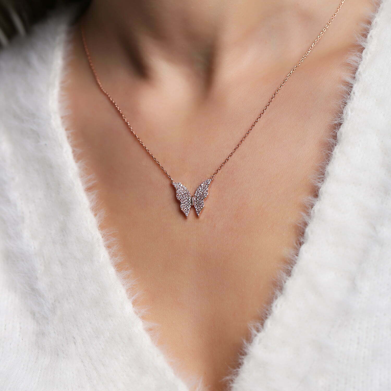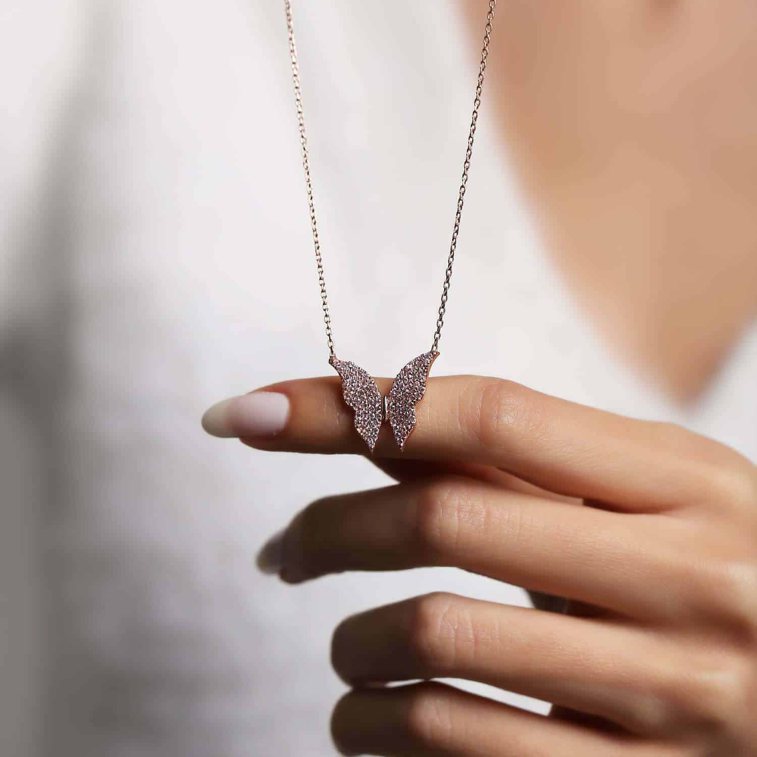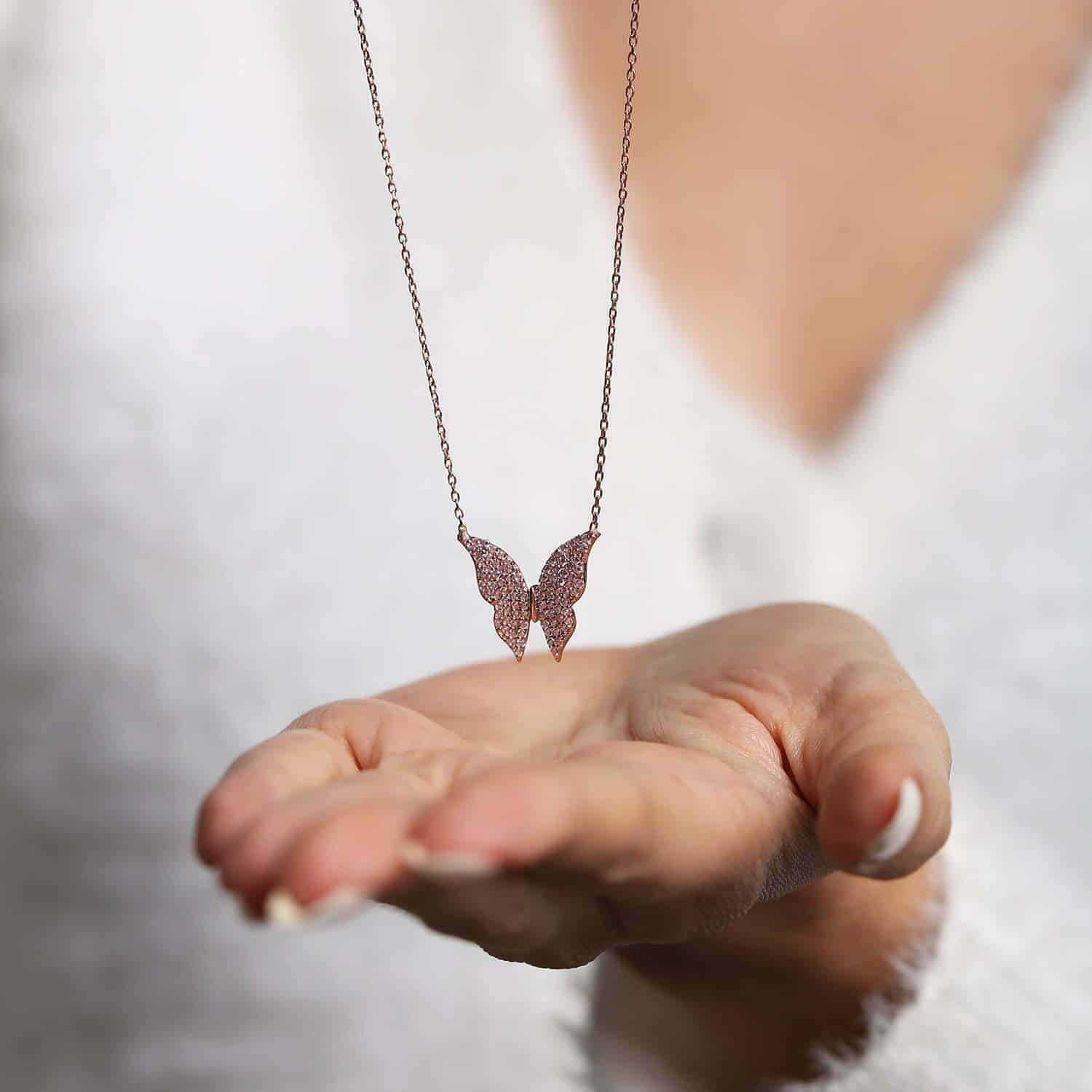 Collier Papillon rose en pierre Zircon