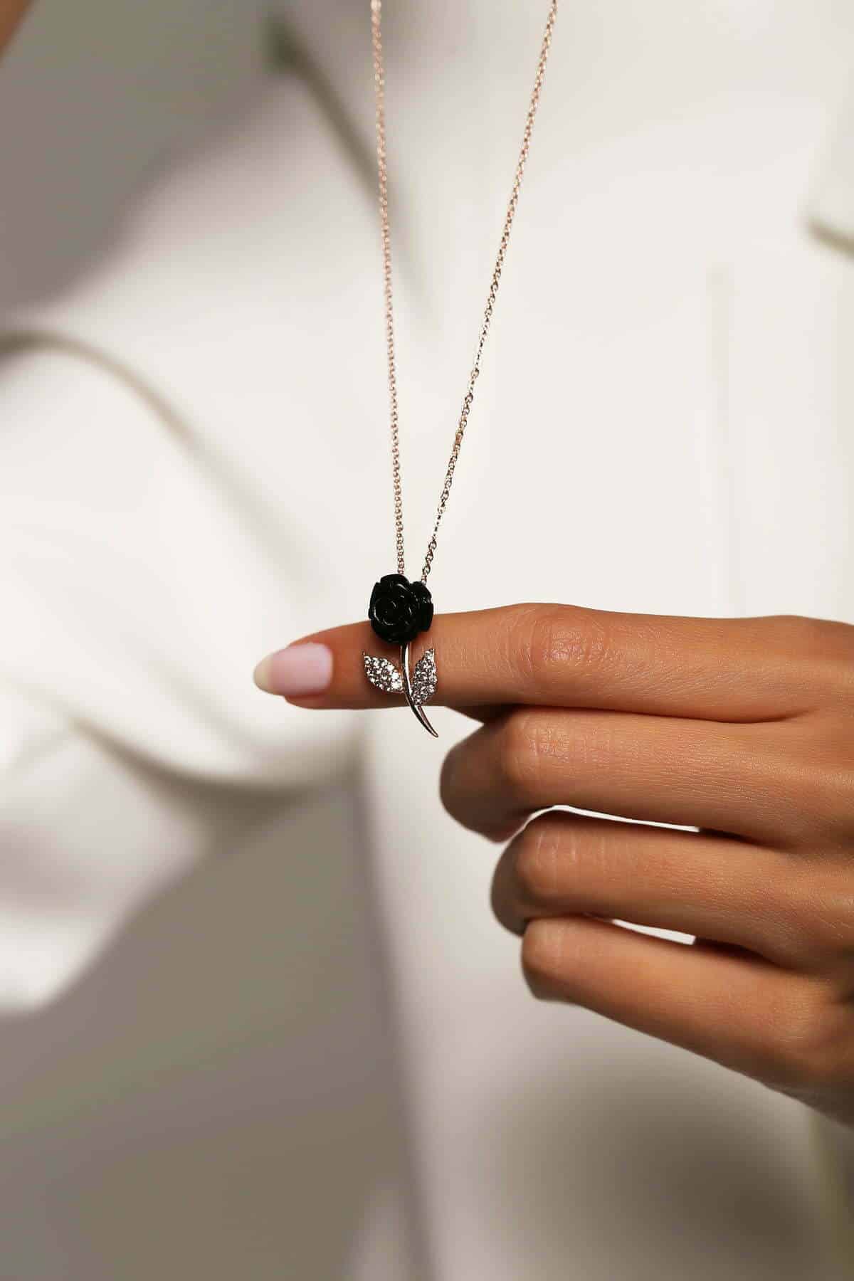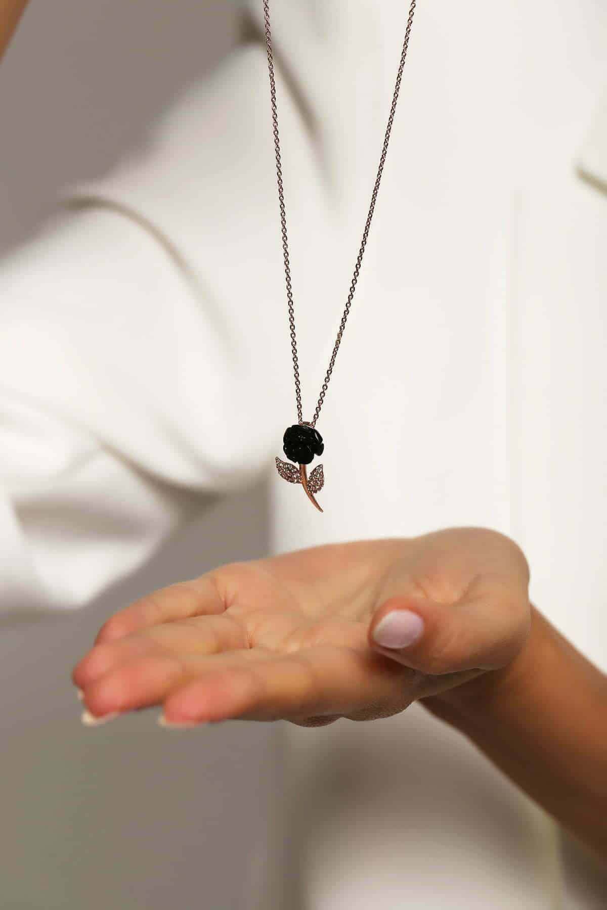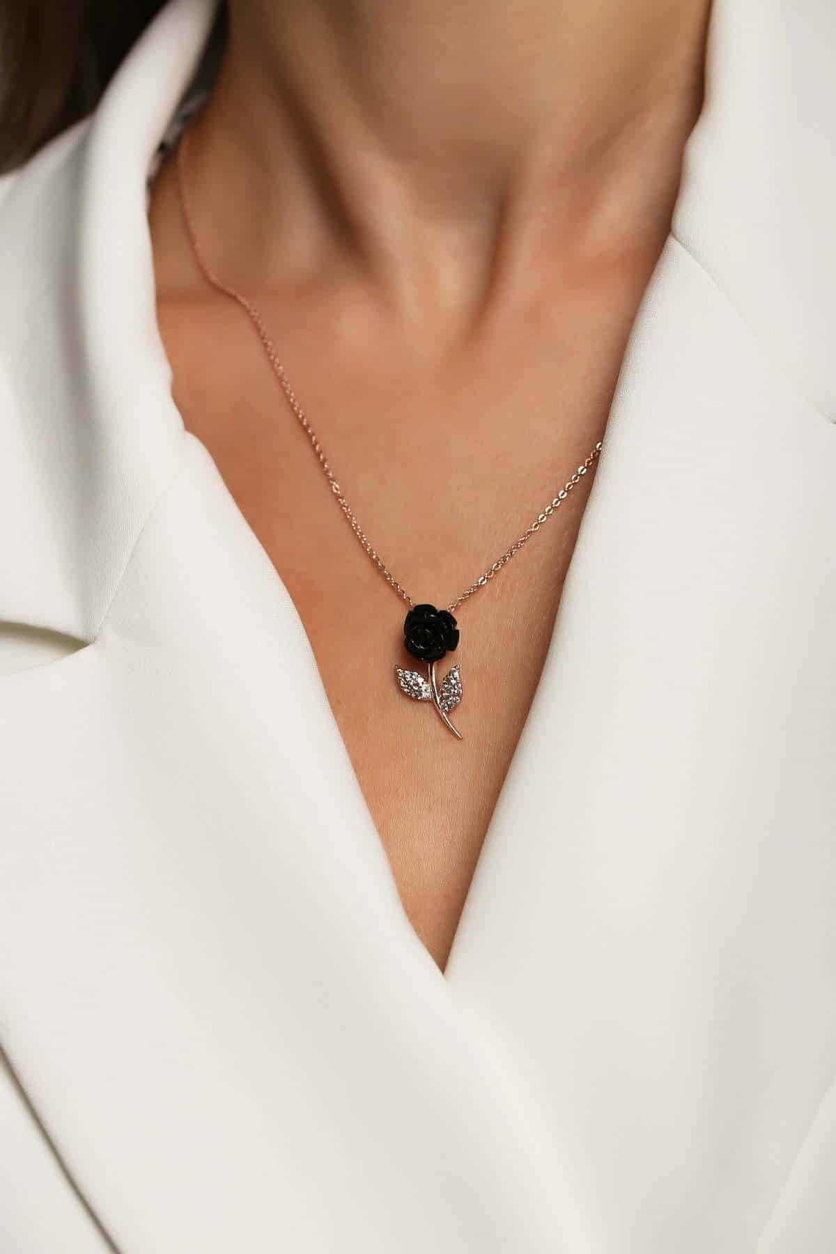 Collier Rose noir en pierre Corail