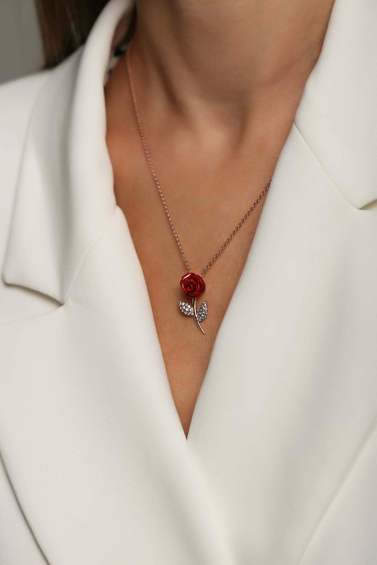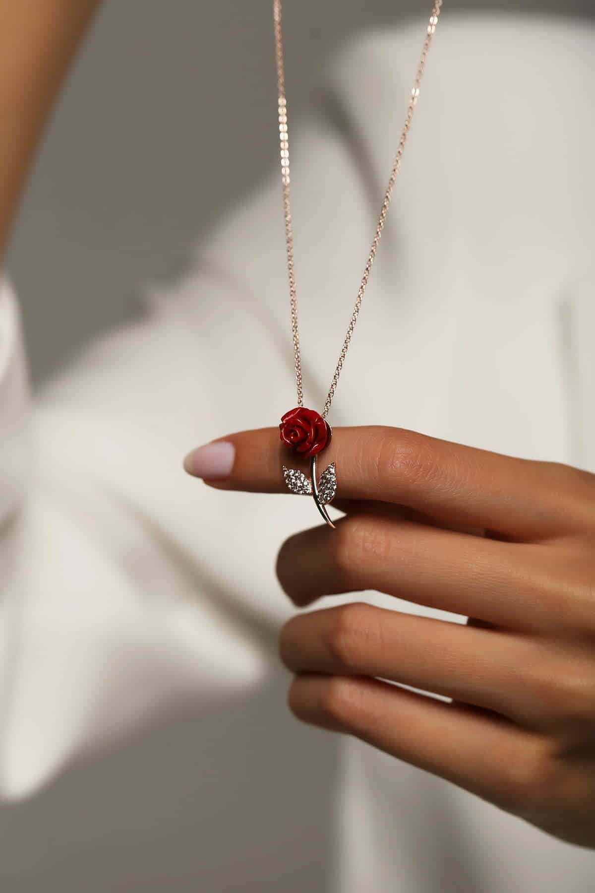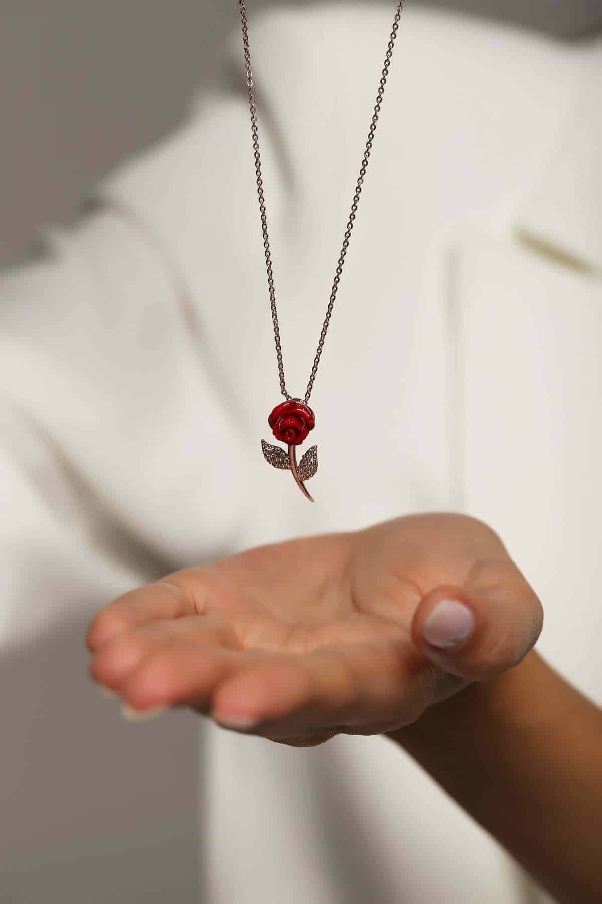 Collier Rose rouge en pierre Corail