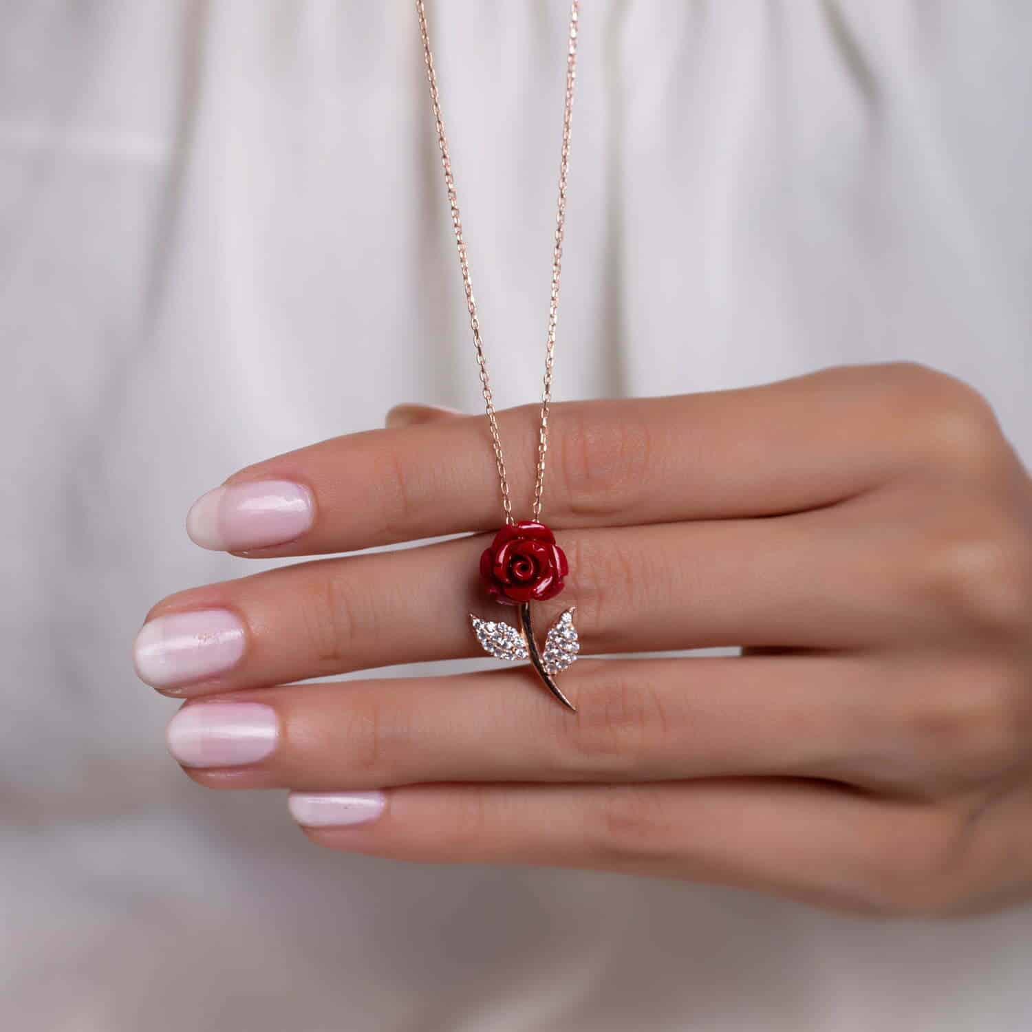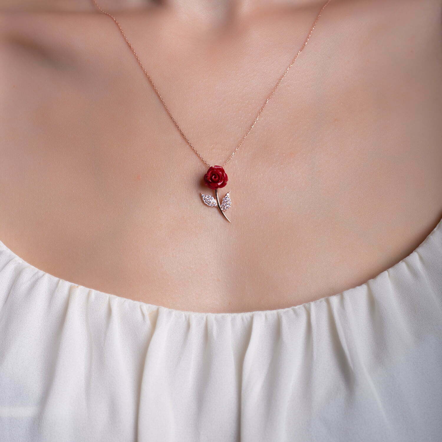 Collier Rose rouge en pierre Corail