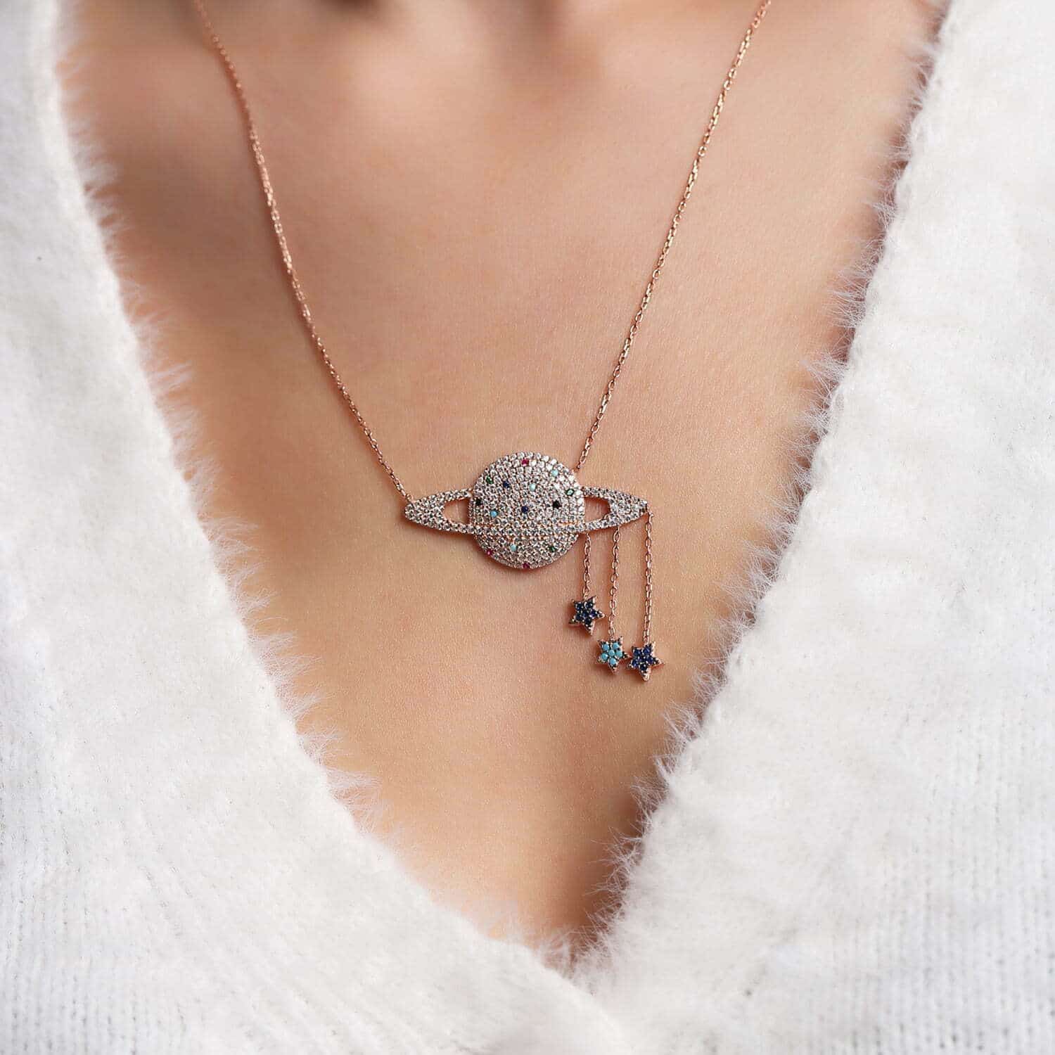 Collier Saturne en Etoile colorée