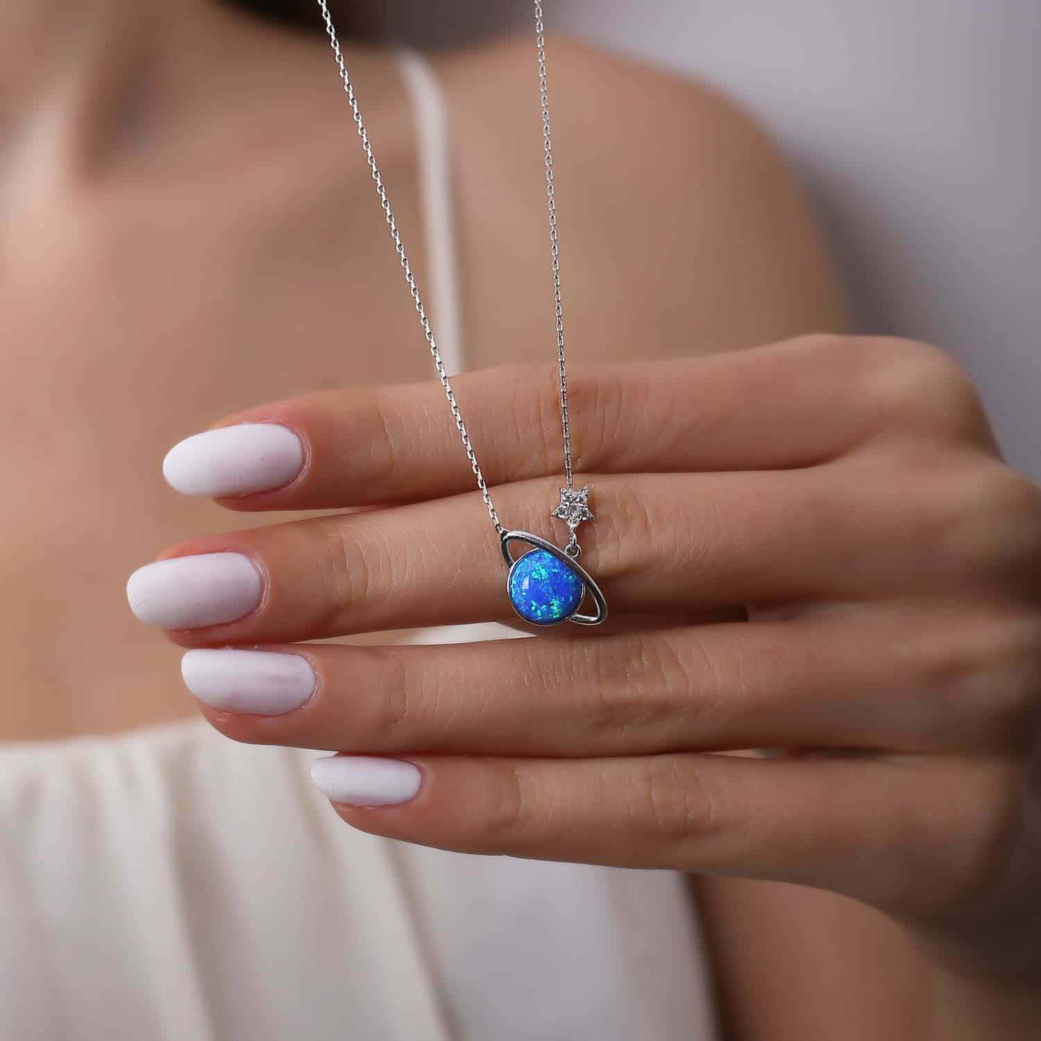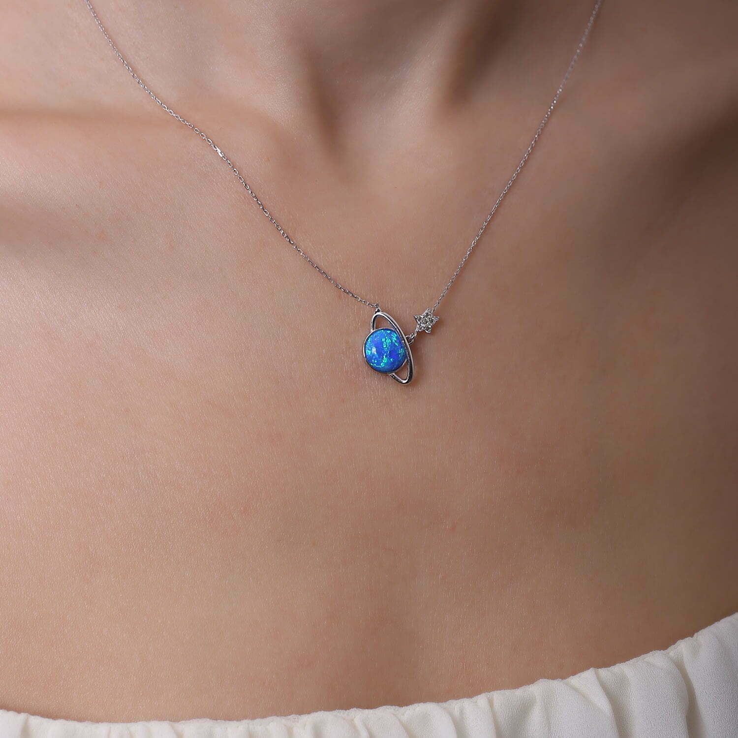 Collier Saturne en pierre Opal