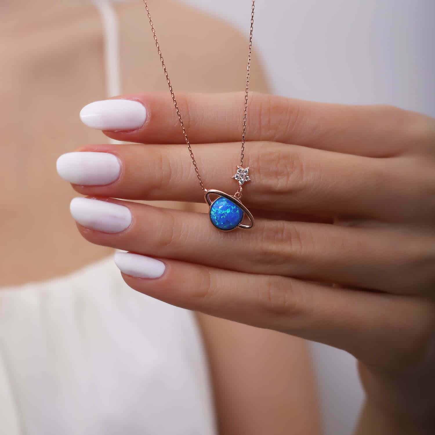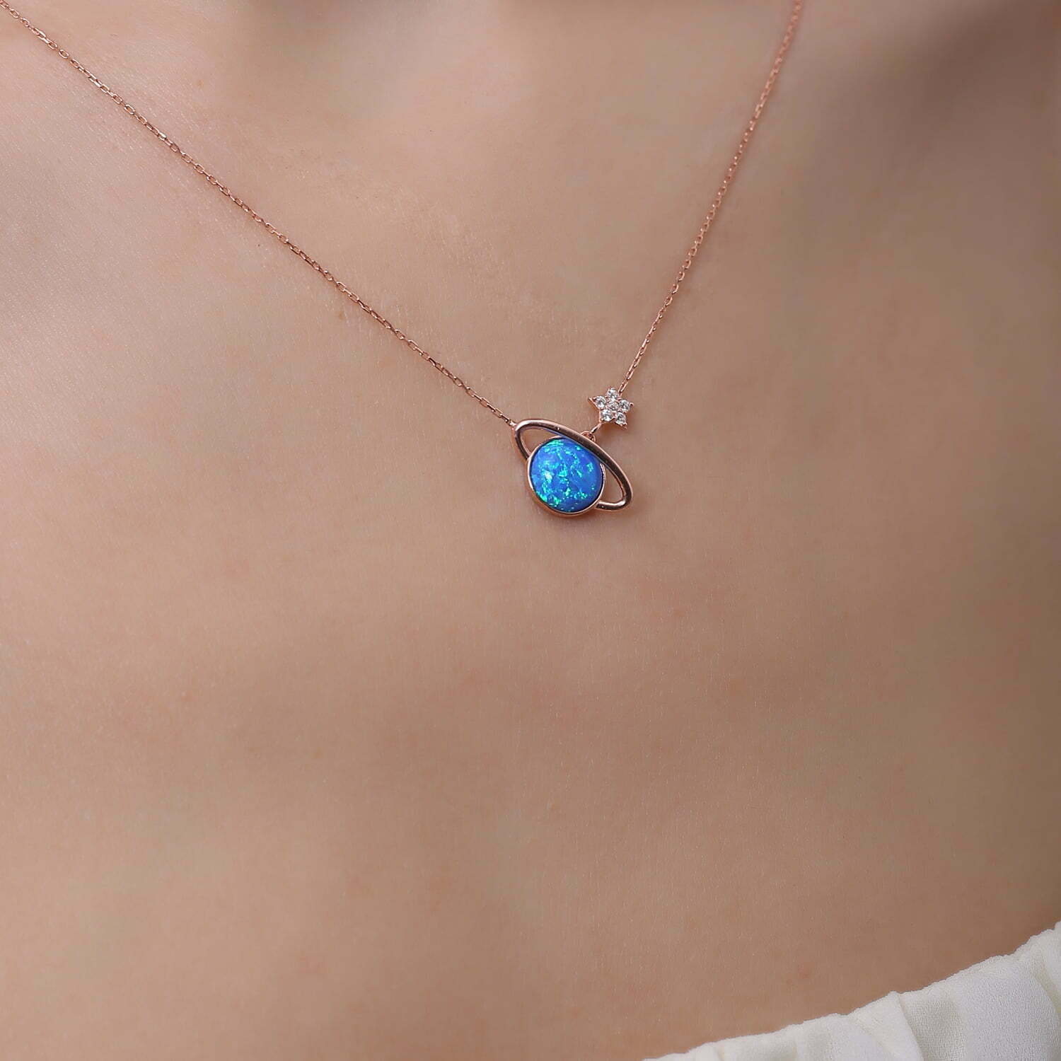 Collier Saturne en pierre Opal
