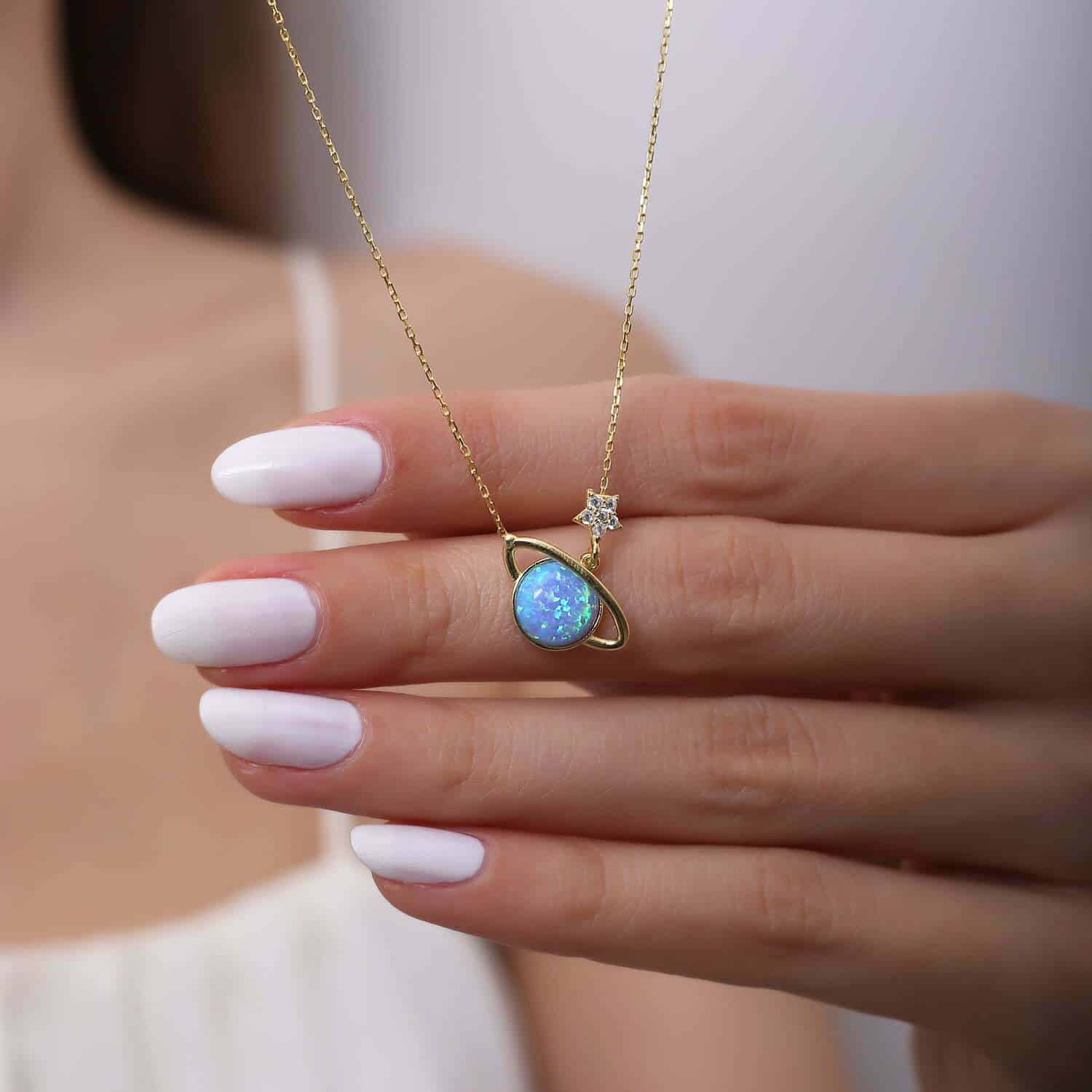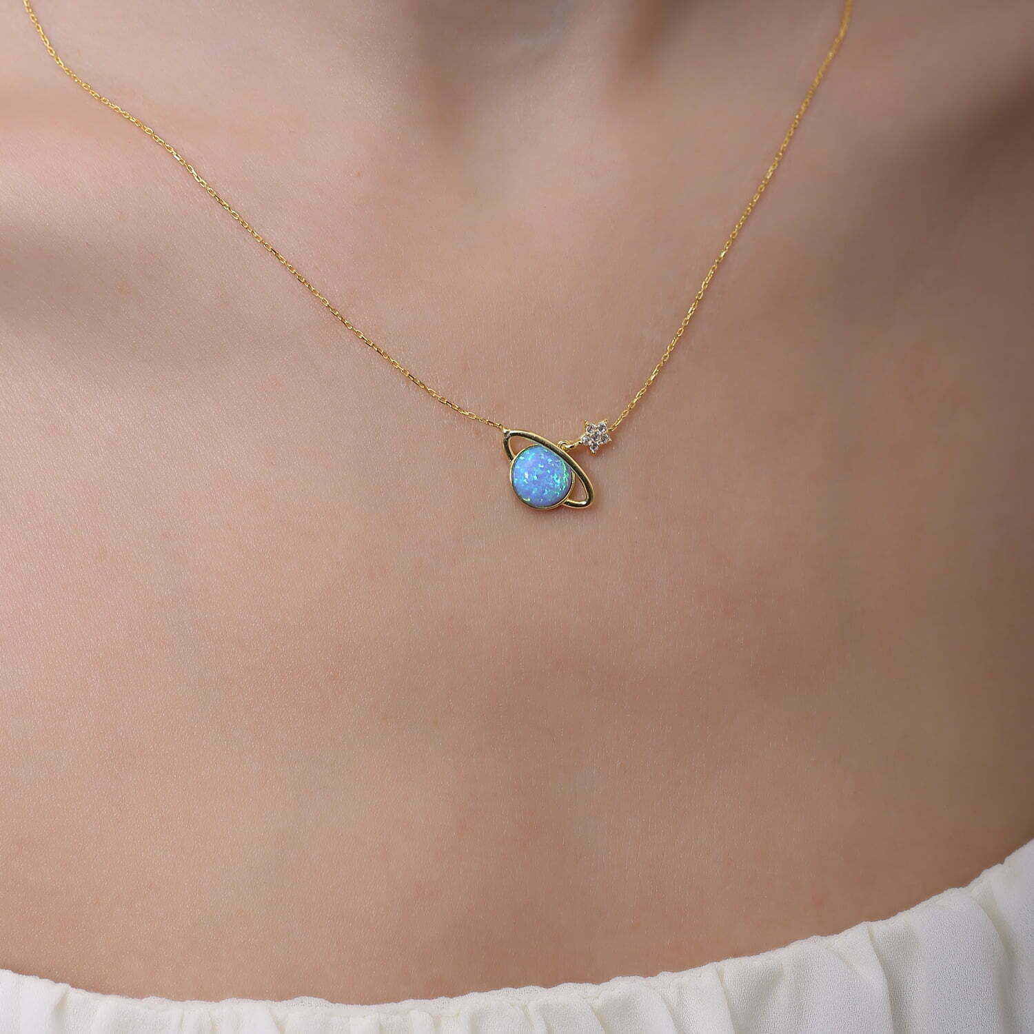 Collier Saturne en pierre Opal plaquƩ Or