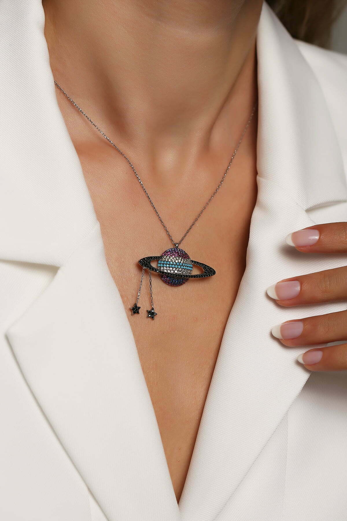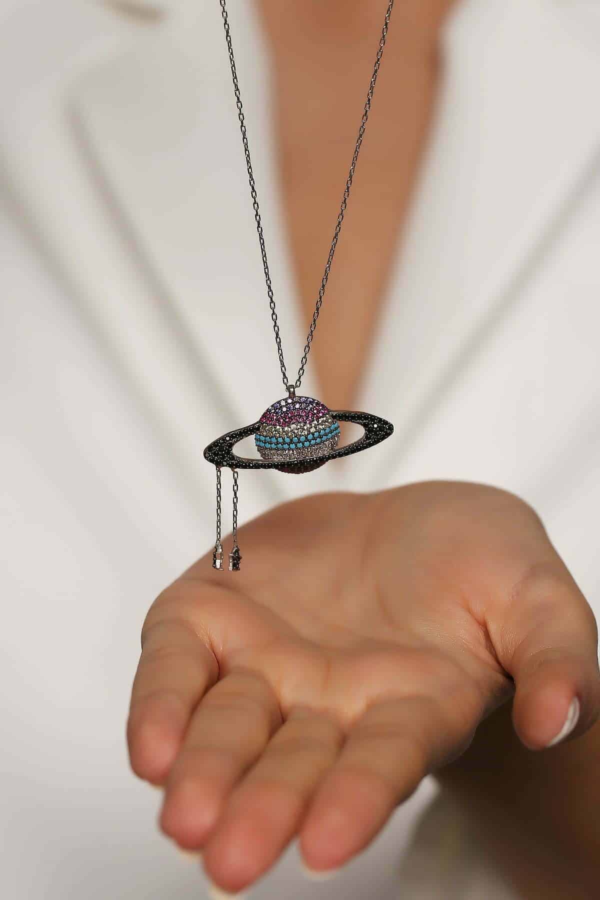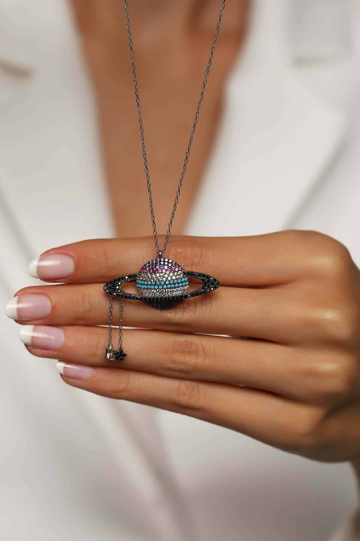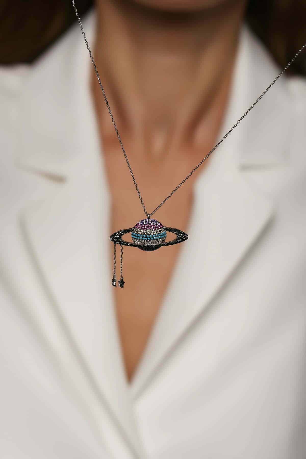 Collier Saturne finition Etoiles filantes