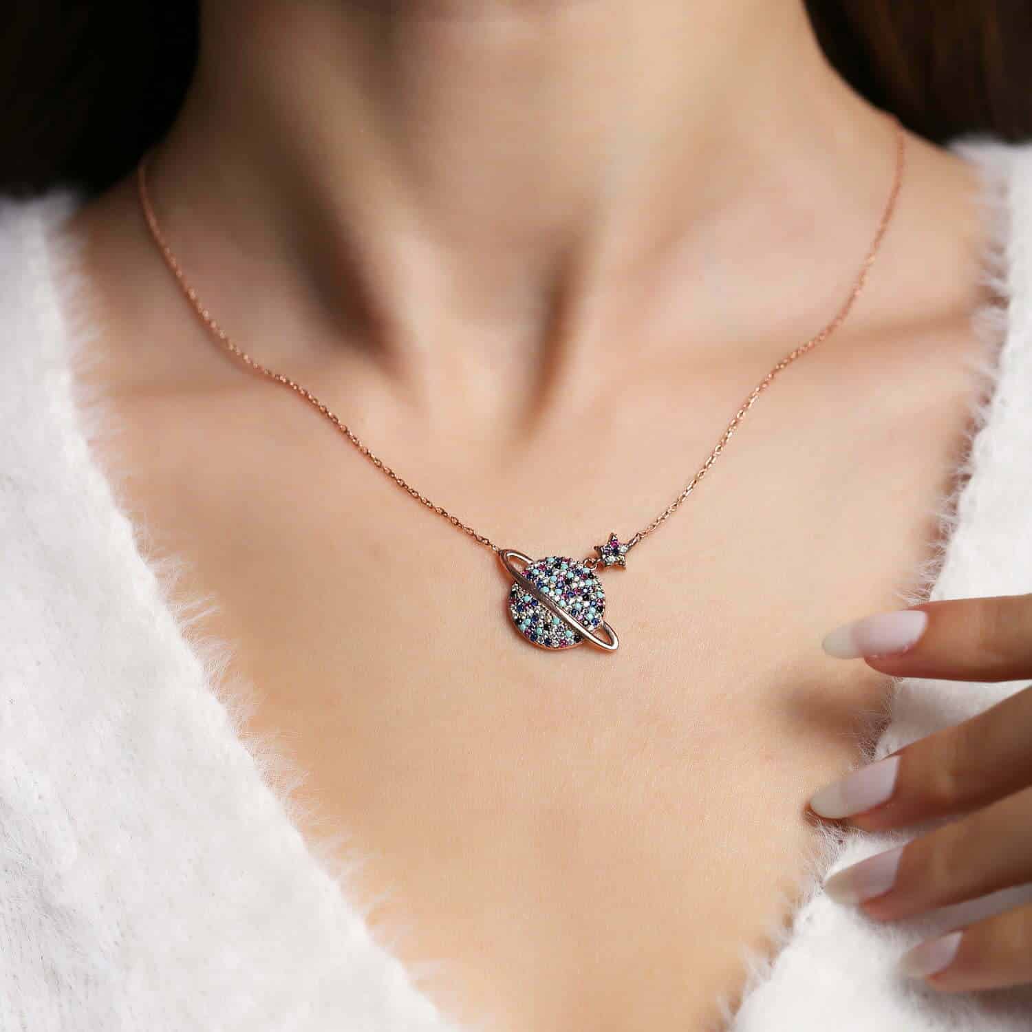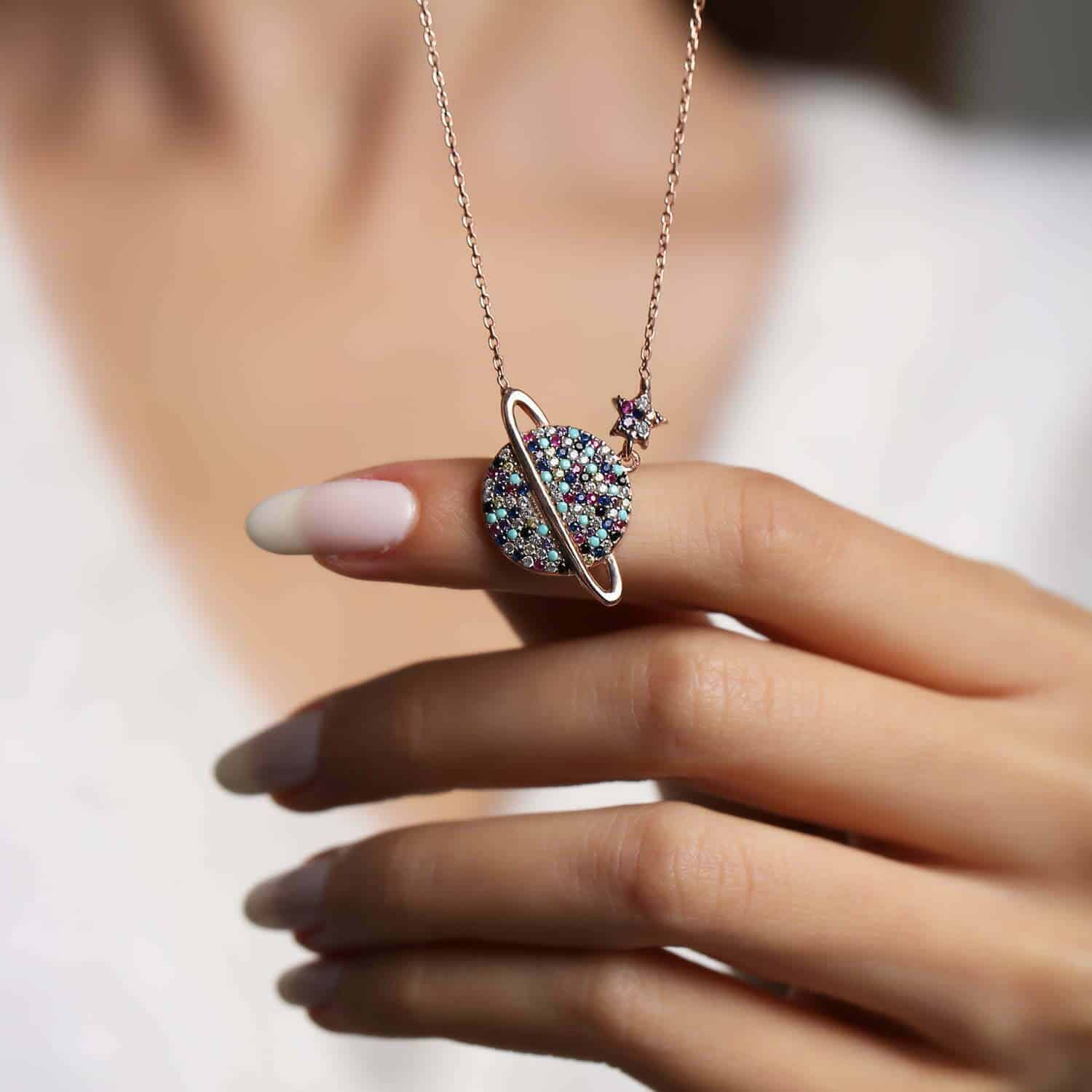 Collier Saturne plusieurs pierres