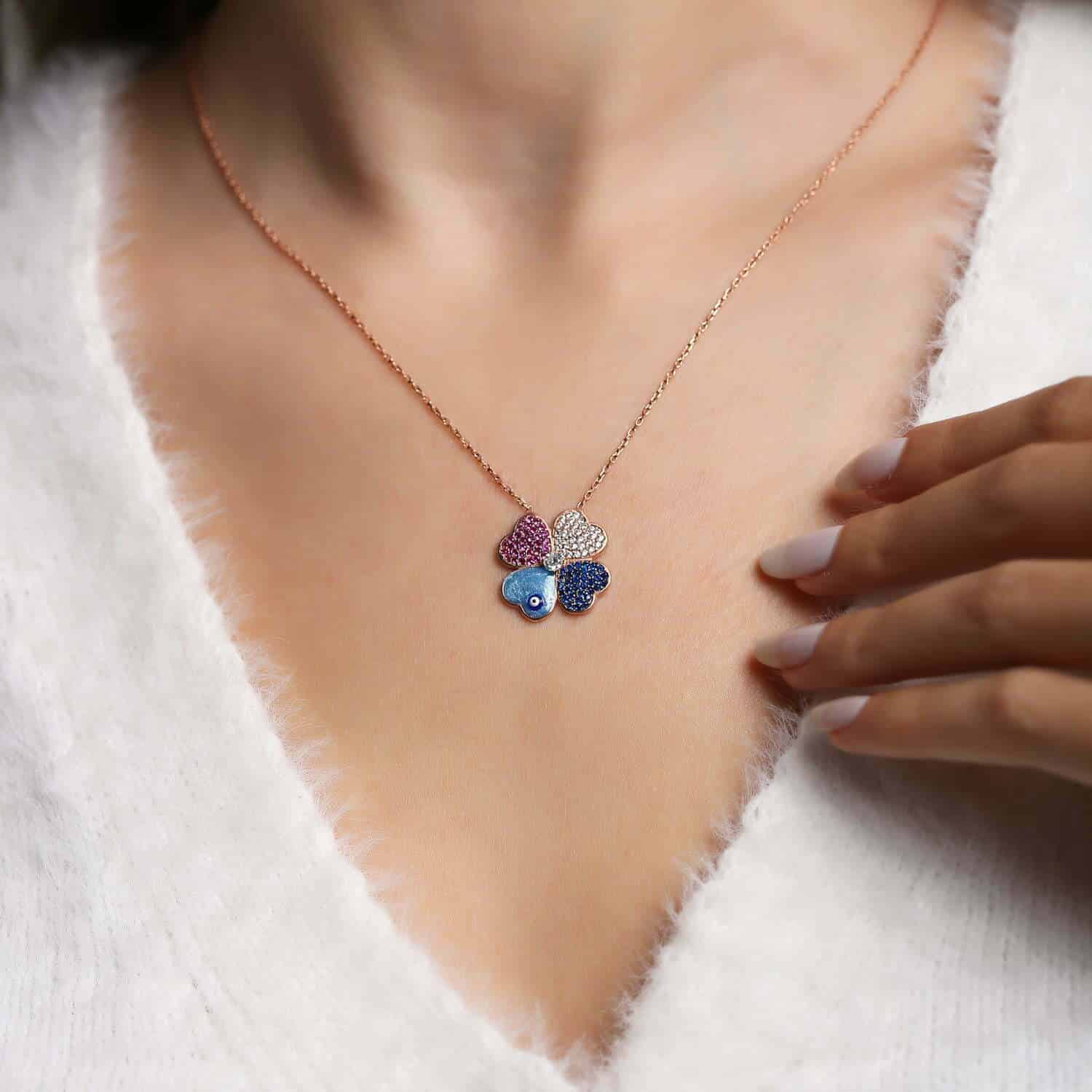 Collier Trèfle avec Œil de Fatma