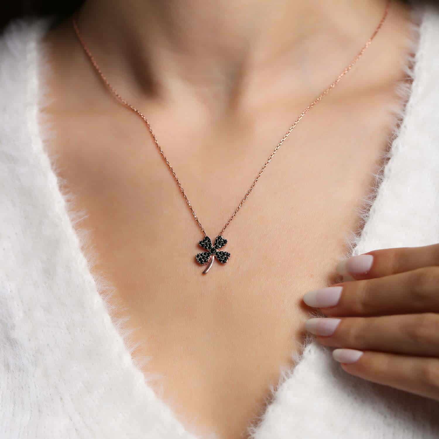 Collier Trèfle en pierre Zircon