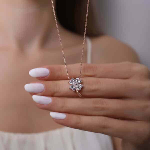 Collier Trèfle en pierre Zircon